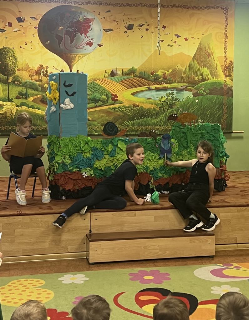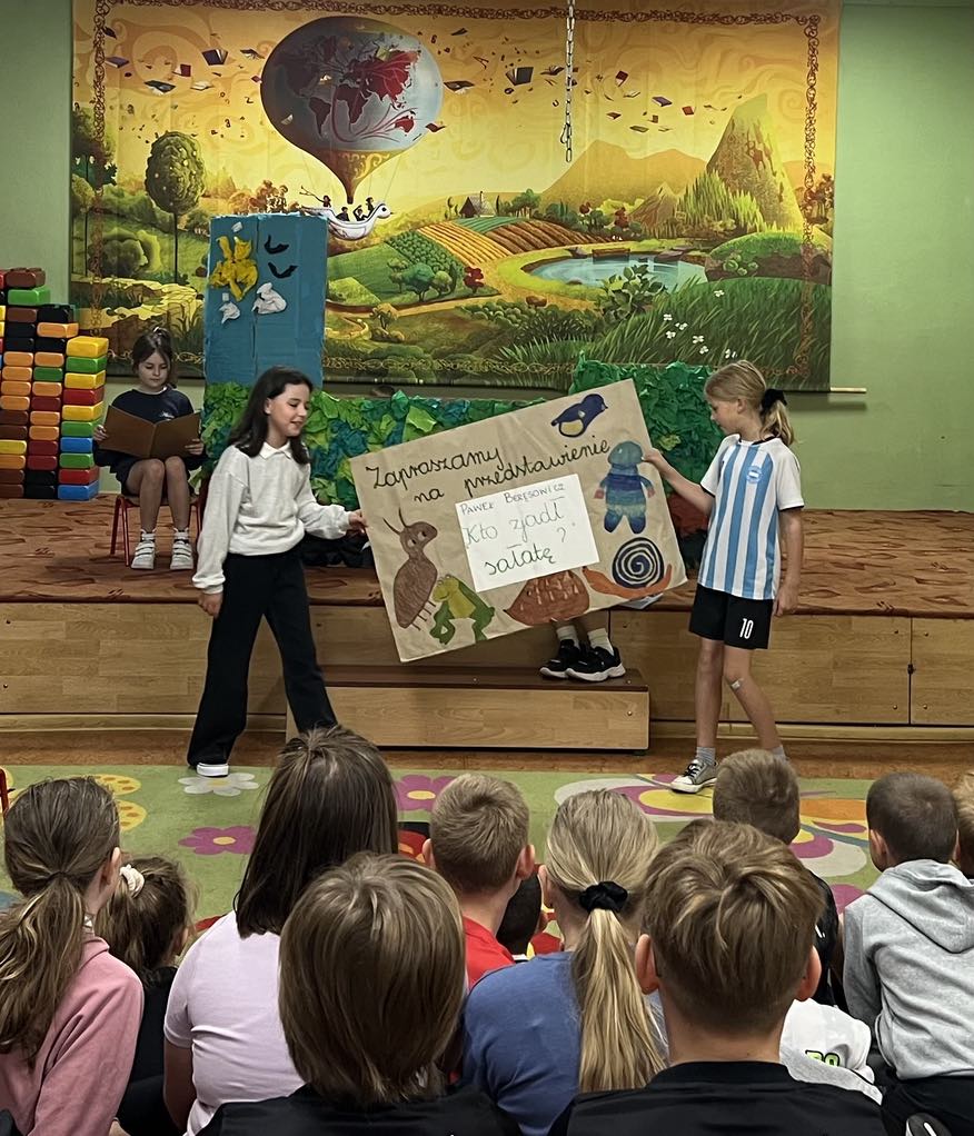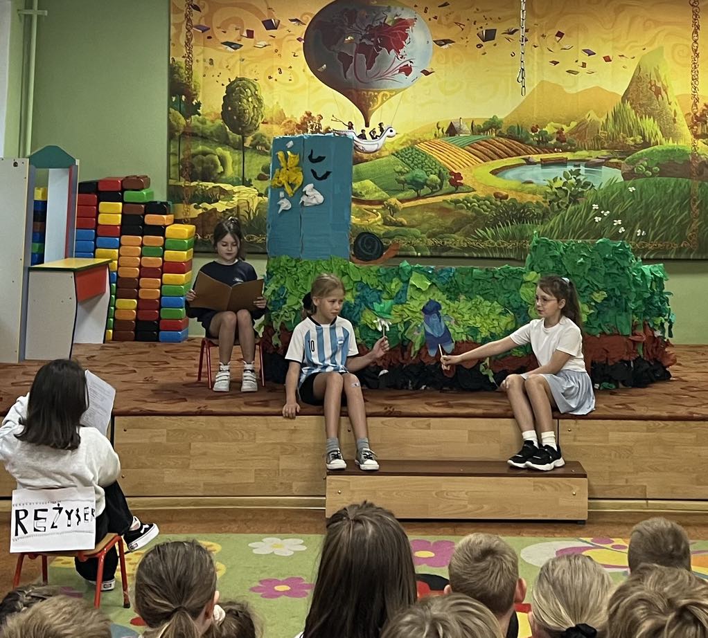 Można powiedzieć, że powstał „Mały teatr”, w którym oprócz aktorów bardzo ważne role odegrali: dyrektor teatru oraz reżyser. Na spektakl zostały zaproszone przedszkolaki, uczniowie klasy I i III wraz z wychowawcami oraz goście zaproszeni: Dyrektor, pani pedagog oraz pani bibliotekarka szkolna.