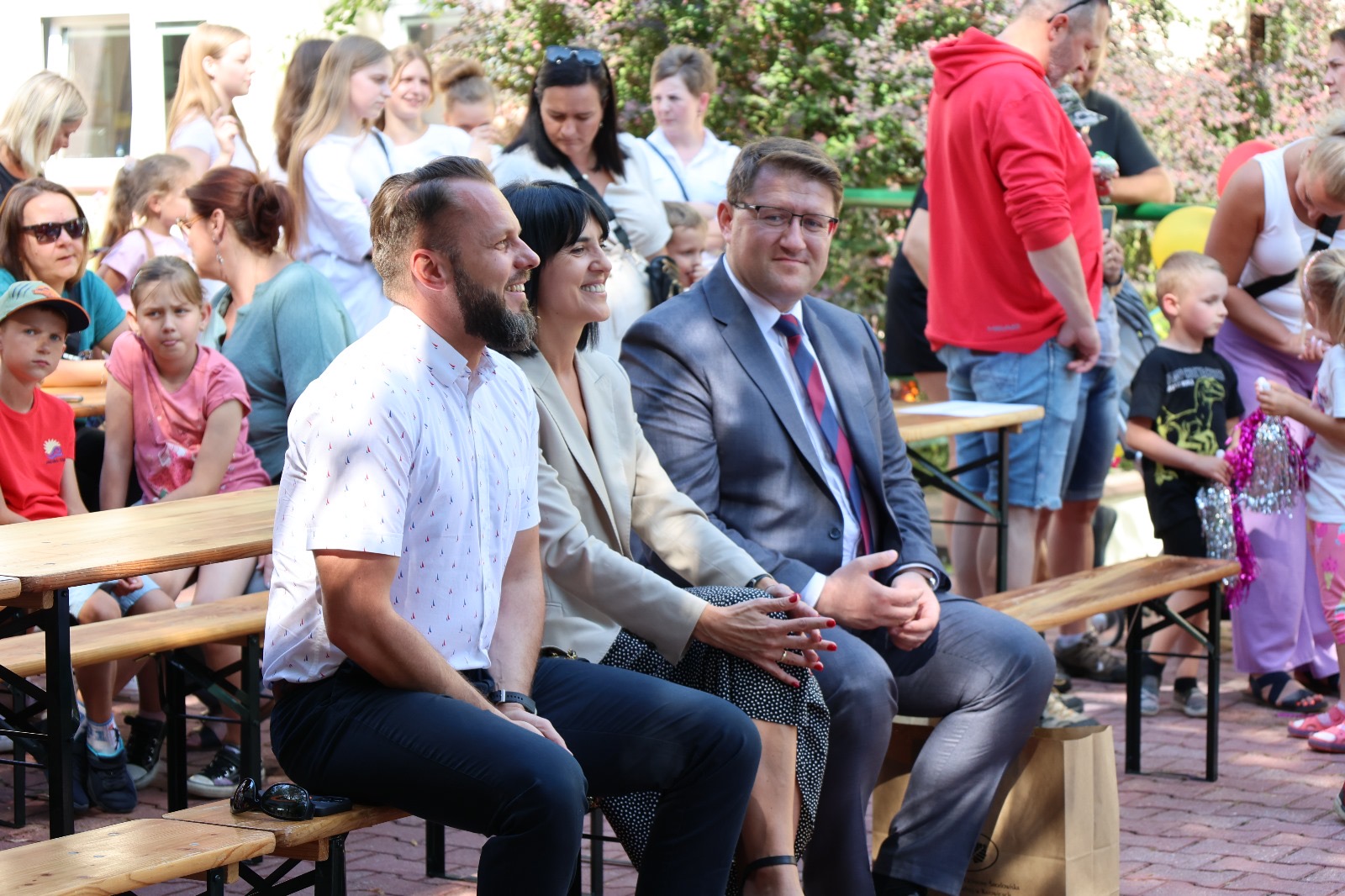 Druga część dnia była świętem rodziny. W godzinach popołudniowych na szkolnym terenie spotkały się całe rodziny uczniów i przedszkolaków. W imprezie uczestniczyli zaproszeni goście w osobach: wójta Gminy Bobrowniki pani Małgorzaty Bednarek, przewodniczącego Rady Gminy Bobrowniki pana Remigiusza Rygoła, Prezesa Wojewódzkiego Funduszu Ochrony Środowiska i Gospodarki Wodnej w Katowicach pana Mateusza Pindela, radnych Rady Gminy Bobrowniki, radnych Powiatu Będzińskiego, dziekana i proboszcza parafii św. Jakuba w Sączowie ks. Marka Sendala, prezesa Klubu Sportowego „Płomień Sączów” pana Marcina Kocota, byłej pani dyrektor ZSP w Sączowie pani Małgorzaty Fijołek z mężem, sołtysów i druhów OSP w Sączowie i delegacji KGW w Sączowie.