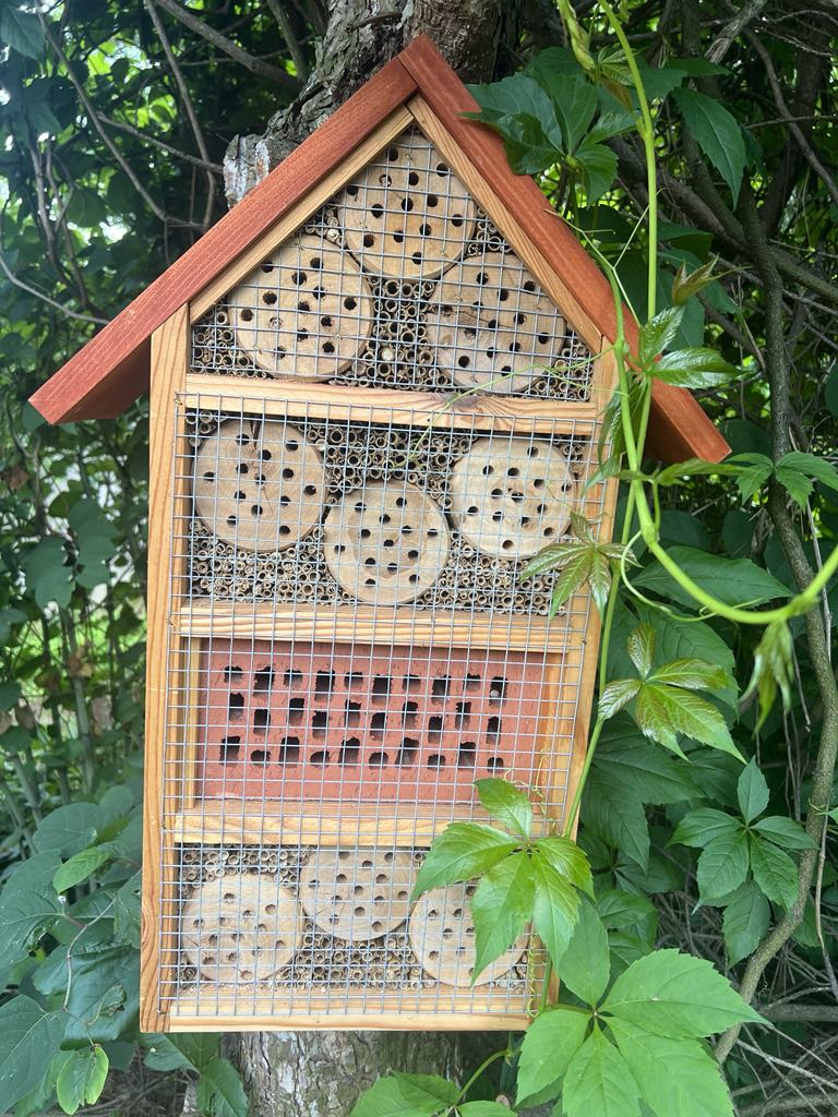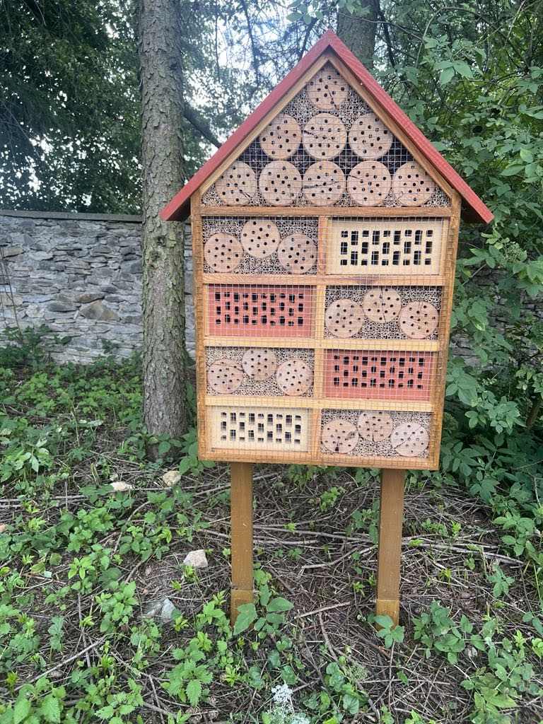 · Strefa roślin miododajnych – nasadzenia miododajne, tablice dydaktyczne oraz domki dla owadów umieszczone wśród wieloletnich modrzewi,