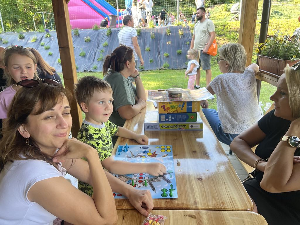 Po oficjalnych uroczystościach nadszedł czas na wspaniałą zabawę podczas Pikniku. Impreza obfitowała w różne atrakcje. Była strefa zabaw z dmuchańcami, strefa gastronomiczna, gdzie serwowano pyszne domowe ciasta, bigos i kiełbaski z grilla. Atrakcją Pikniku było stanowisko z kucykami, gdzie można było dosiąść dorodnego kucyka i zrobić krótką przejażdżkę w siodle oraz stanowisko edukacji w zakresie pierwszej pomocy przedmedycznej, które obsługiwali druhowie z OSP w Sączowie. Nie zabrakło również słodkiej, cukrowej waty! Jak co roku, ważnym punktem programu Rodzinnego Pikniku była loteria fantowa.