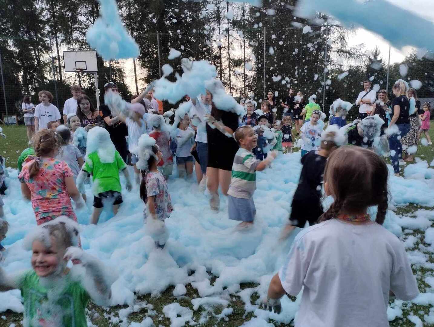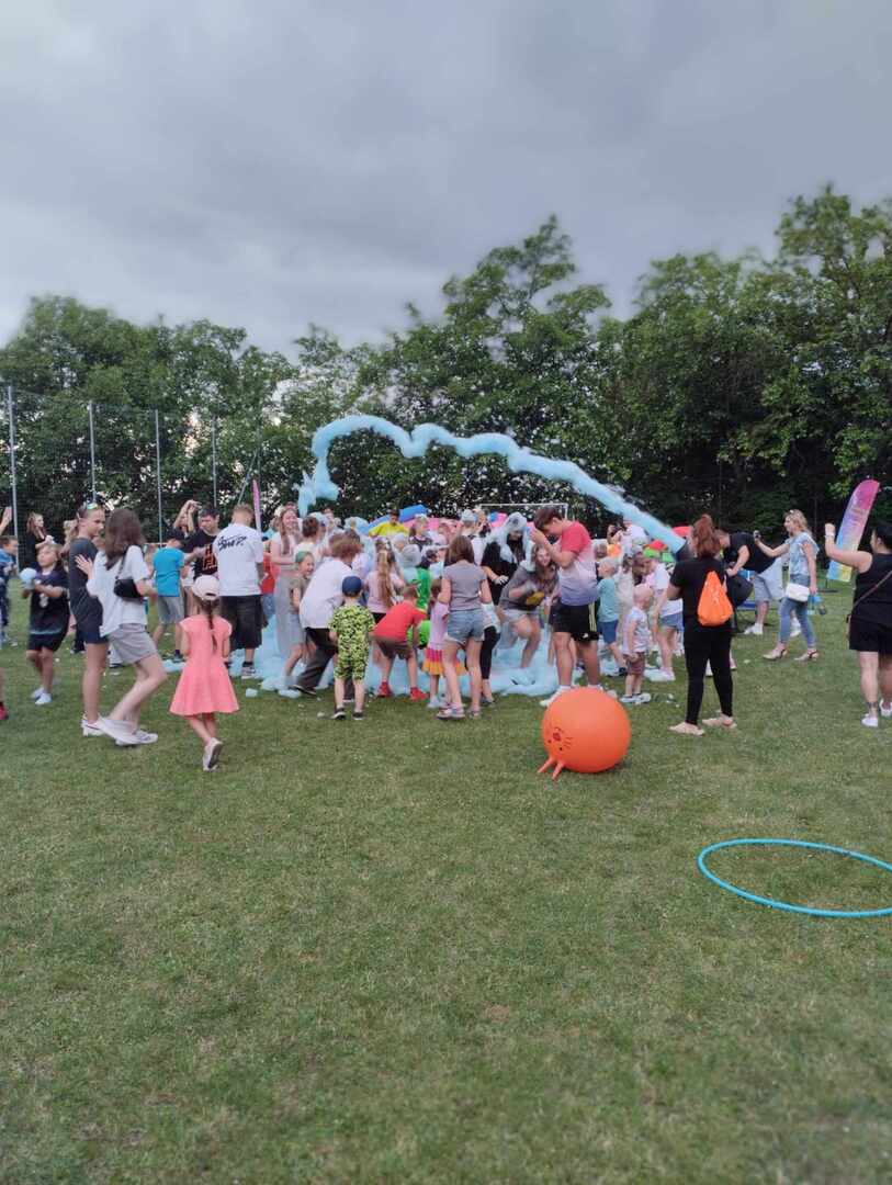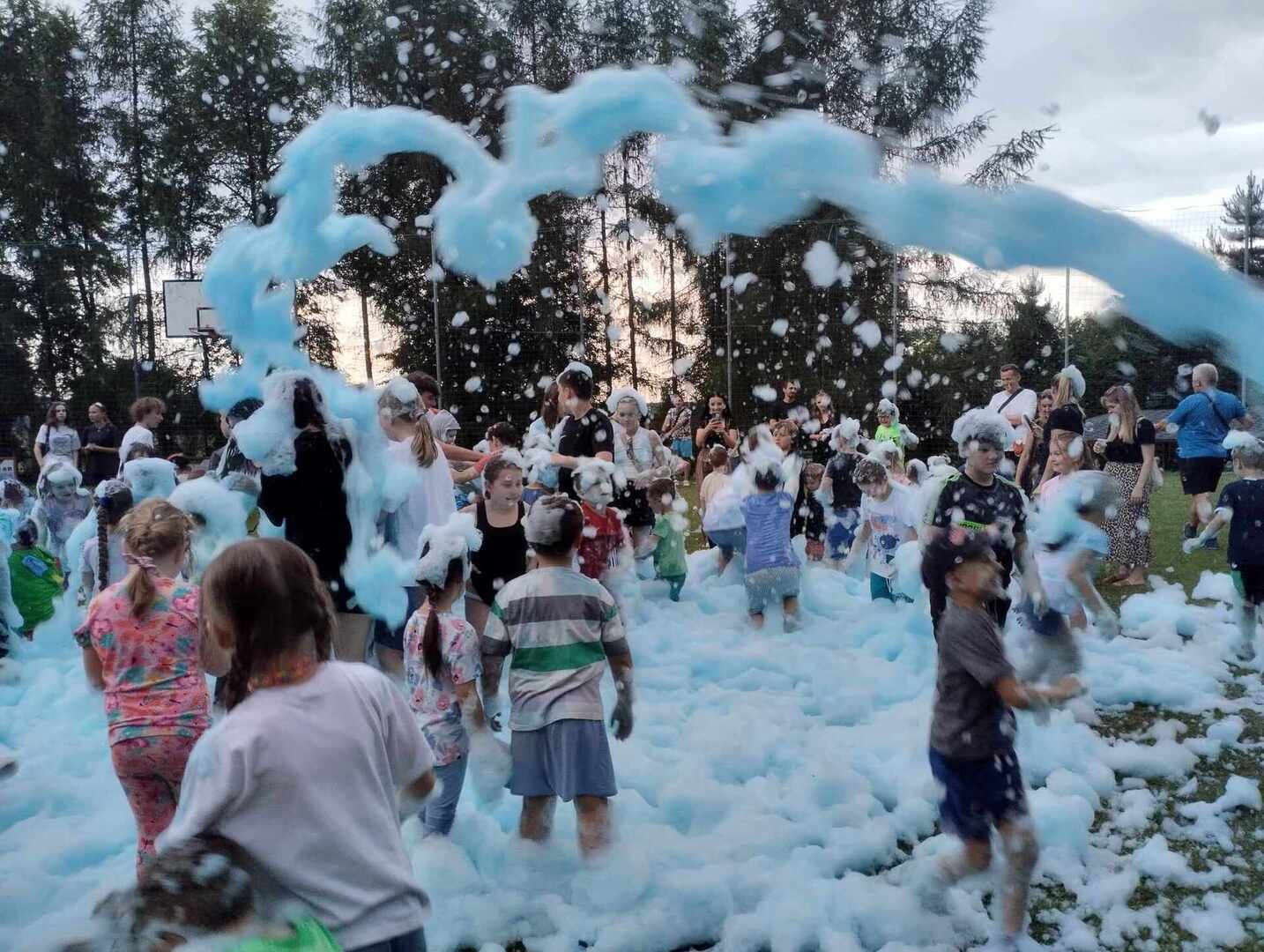 Na zakończenie rodzinnej imprezy organizatorzy przewidzieli bajeczną zabawę „Piana Party”. I stało się… Uczestnicy Pikniku, zarówno dzieci jak i dorośli, zamienili się w niebieskie stworki! Zabawa była przednia! Uciechy było co nie miara! I stosy brudnej odzieży – ale to już był kłopot uczestników zabawy.