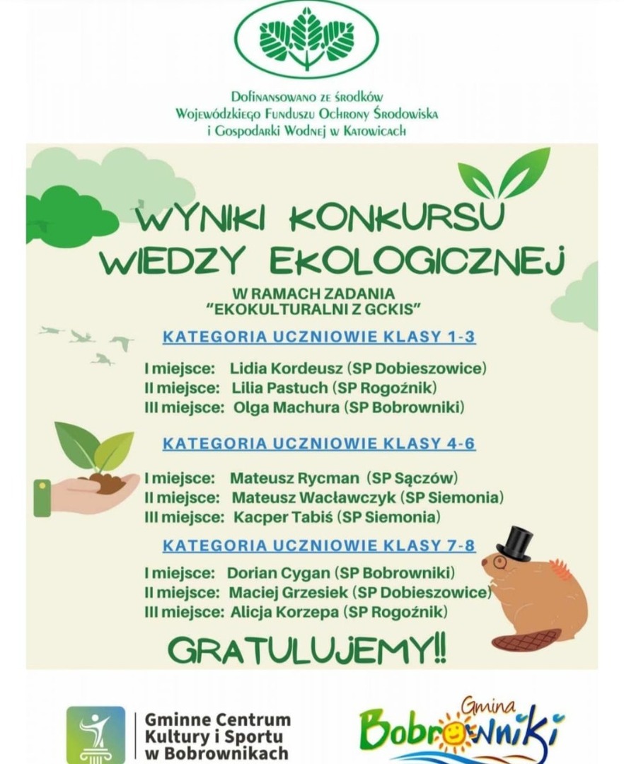 3 czerwca w Domu Kultury w Bobrownikach odbył się drugi etap KONKURSU WIEDZY EKOLOGICZNEJ zorganizowany przez Gminne Centrum Kultury i Sportu w Bobrownikach w ramach projektu „ Ekokulturalni z GCKiS”.