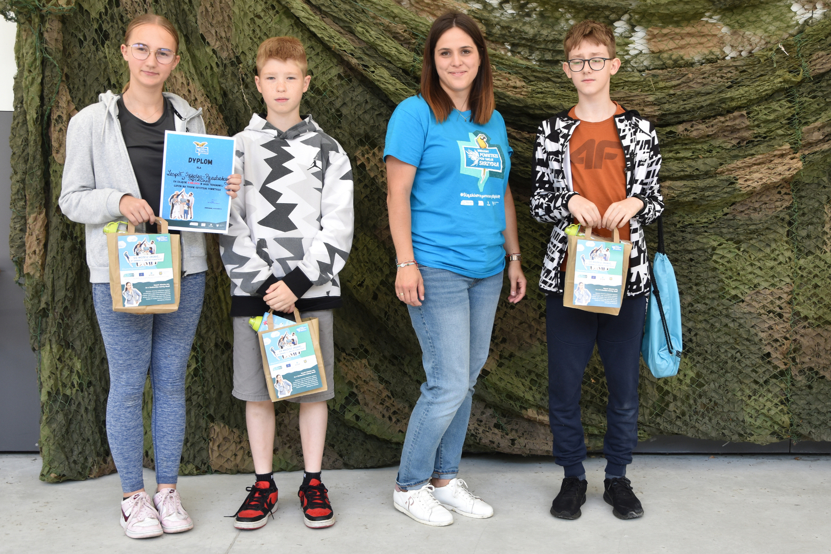 5 czerwca na terenie parku w Rogoźniku drużyna z naszej szkoły w składzie: Marta Cabaj klasa 7, Konrad Krzemiński i Mateusz Rycman klasa 6 brała udział w grze terenowej „ Lufcik na tropie czystego powietrza” organizowanej na terenie Gminy Bobrowniki w ramach projektu LIFE „ Śląskie. Przywracamy błękit.”