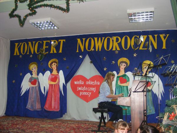 11 stycznia 2013r. w sali teatralnej odbył się już IV "Koncert Noworoczny" w wykonaniu uczniów naszej szkoły oraz uczniów Społecznego Ogniska Muzycznego w Piekarach Śląskich filia w Sączowie. Urozmaicony program zawierał tak utwory muzyki klasycznej i rozrywkowej, jak i szereg kolęd. Koncert rozpoczął się występem szkolnych kolędników z klasy VI, którzy przedstawili Szkolną szopkę noworoczną. Dalej mogliśmy usłyszeć naszych młodych artystów prezentujących utwory na fortepianie, skrzypcach, gitarze, oraz na flecie poprzecznym. Dzieci występowały solo, w duetach grając na instrumentach lub śpiewając. II część koncertu wypełniły gościnne występy uczniów Państwowej Szkoły Muzycznej w Tarnowskich Górach