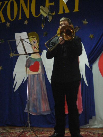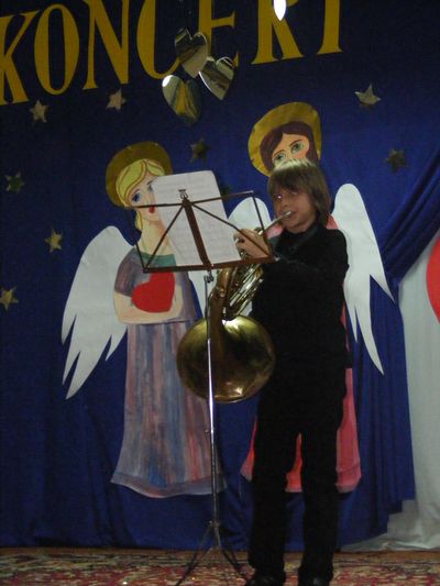Młodzi artyści wprowadzili nas w zaczarowany świat muzyki dźwiękami trąbki, waltorni i tuby. W ich wykonaniu usłyszeliśmy między innymi barokowe kompozycje F. Haendla, Tielmana grane przez solistów oraz brawurowo wykonane przez kwintet instrumentów dętych Merry Christmas i Jungle Bells.