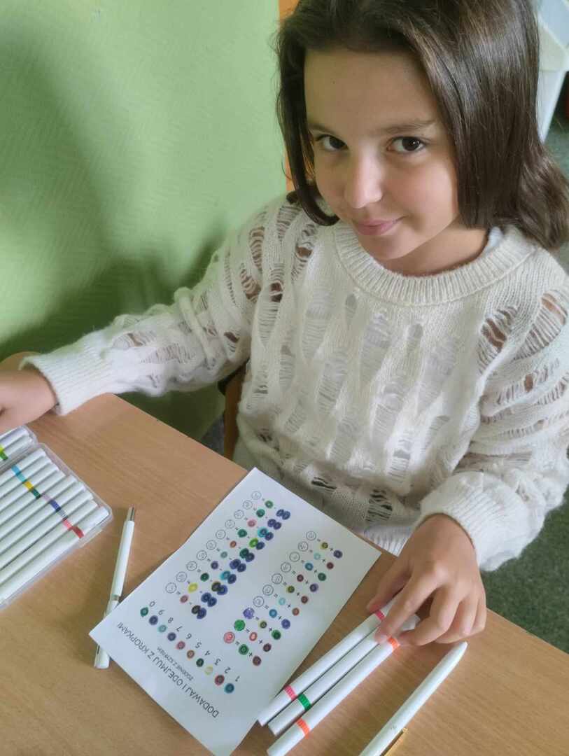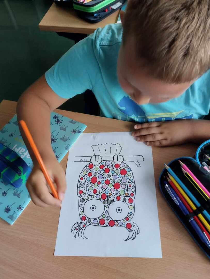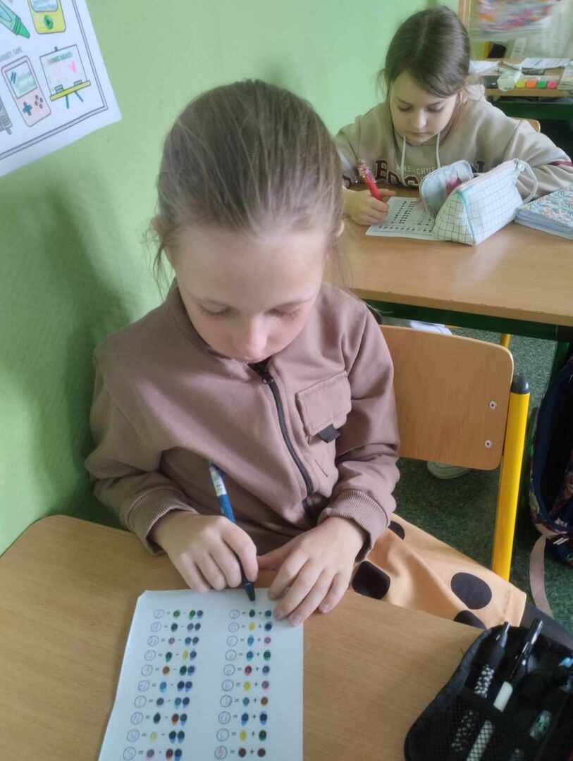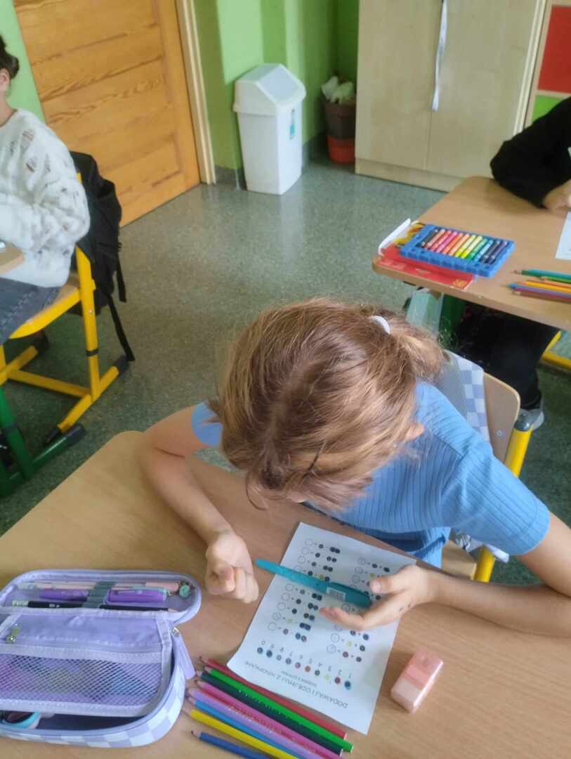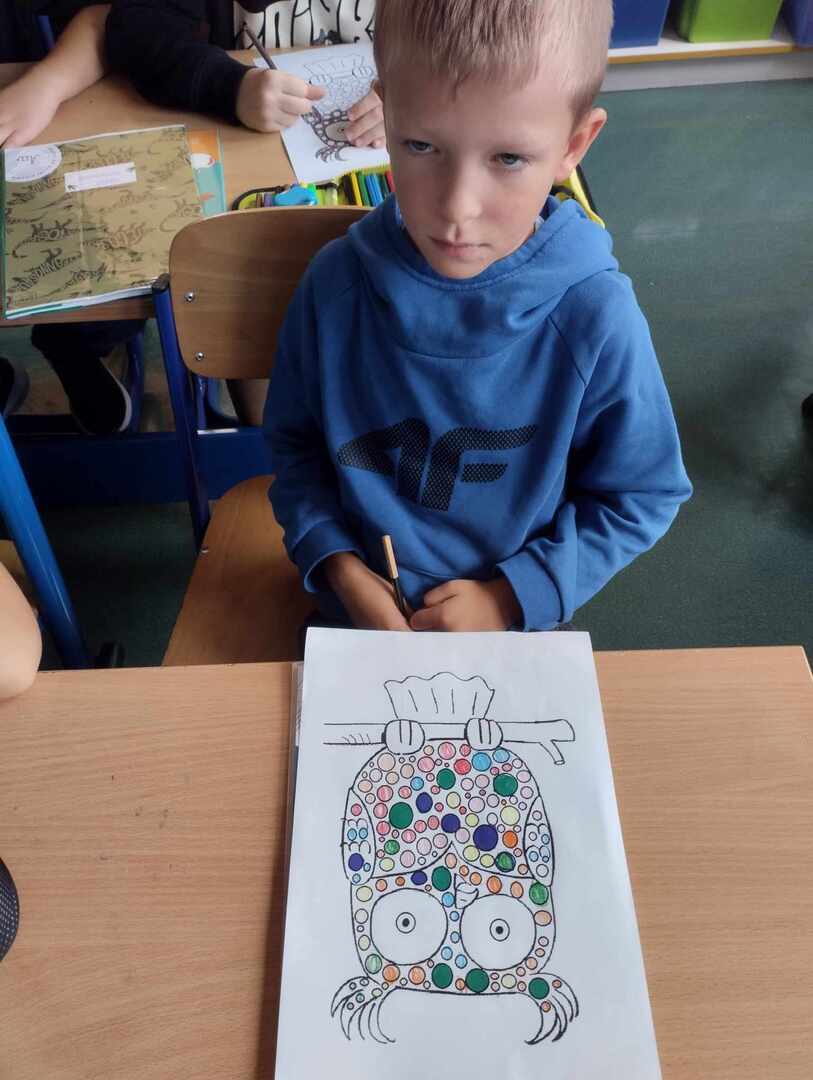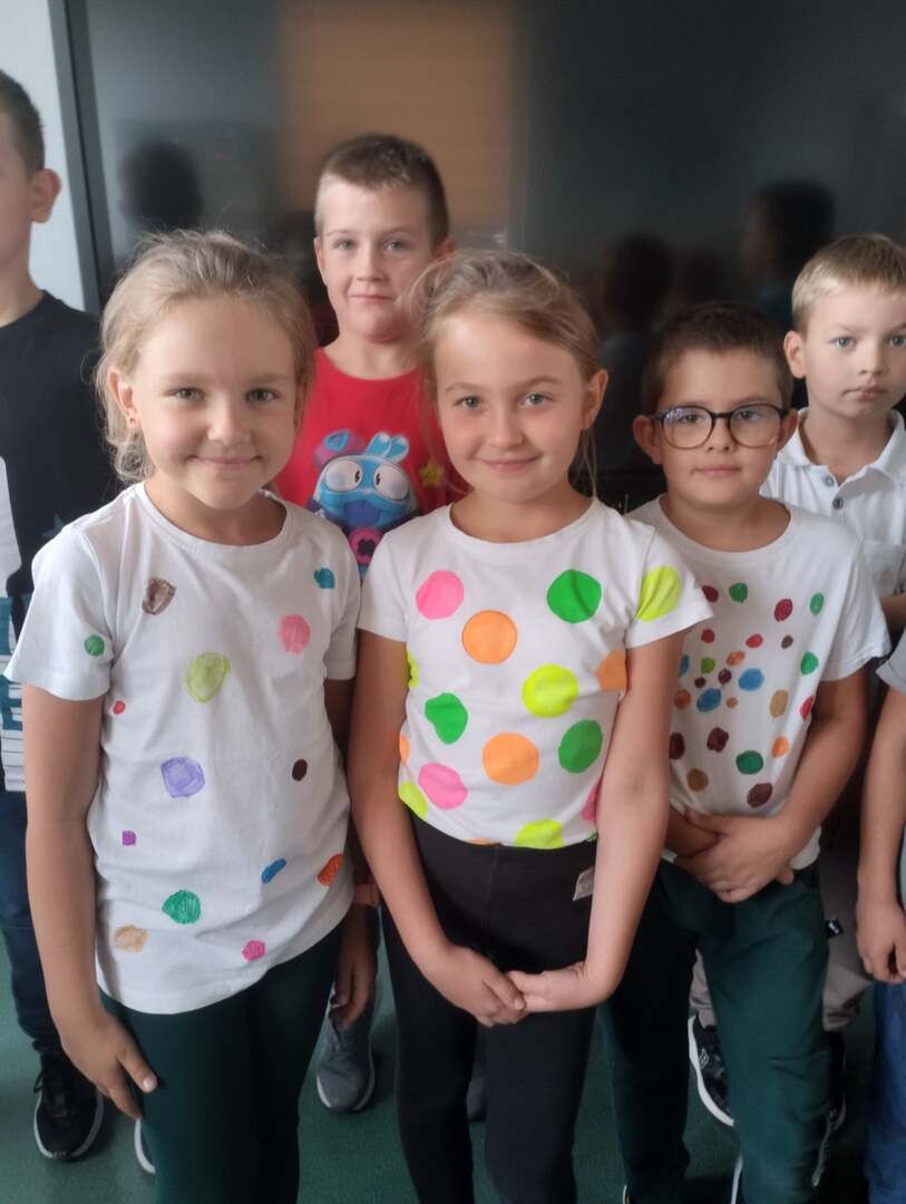 Tego dnia obowiązywały ubrania w kropki. W każdej klasie odbyły się warsztaty, podczas których królowała dobra zabawa. Dzieci chwaliły się swoimi talentami, opowiadały o swoich pasjach i sukcesach. Wykonali kropkowane dzieła. W klasie III uczniowie bawili się liczbami zakodowanymi w kropkach.