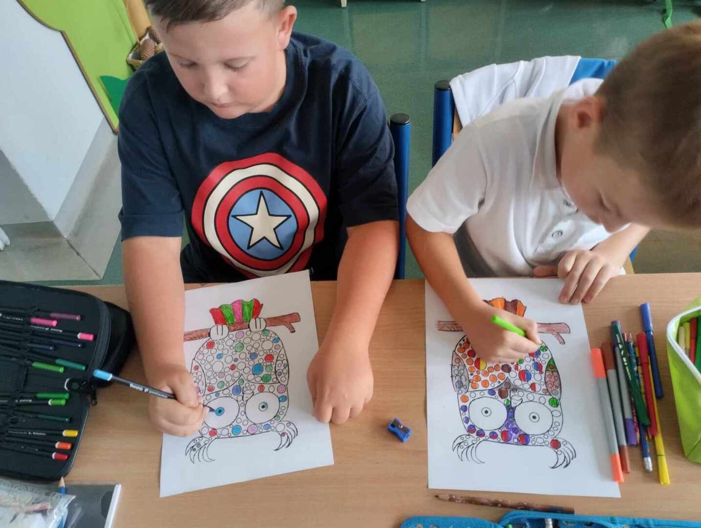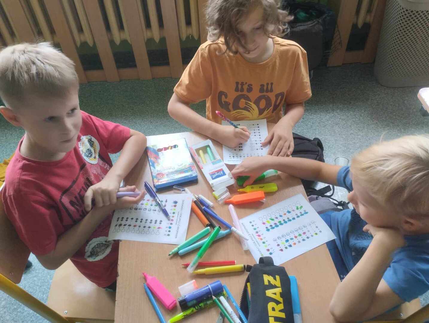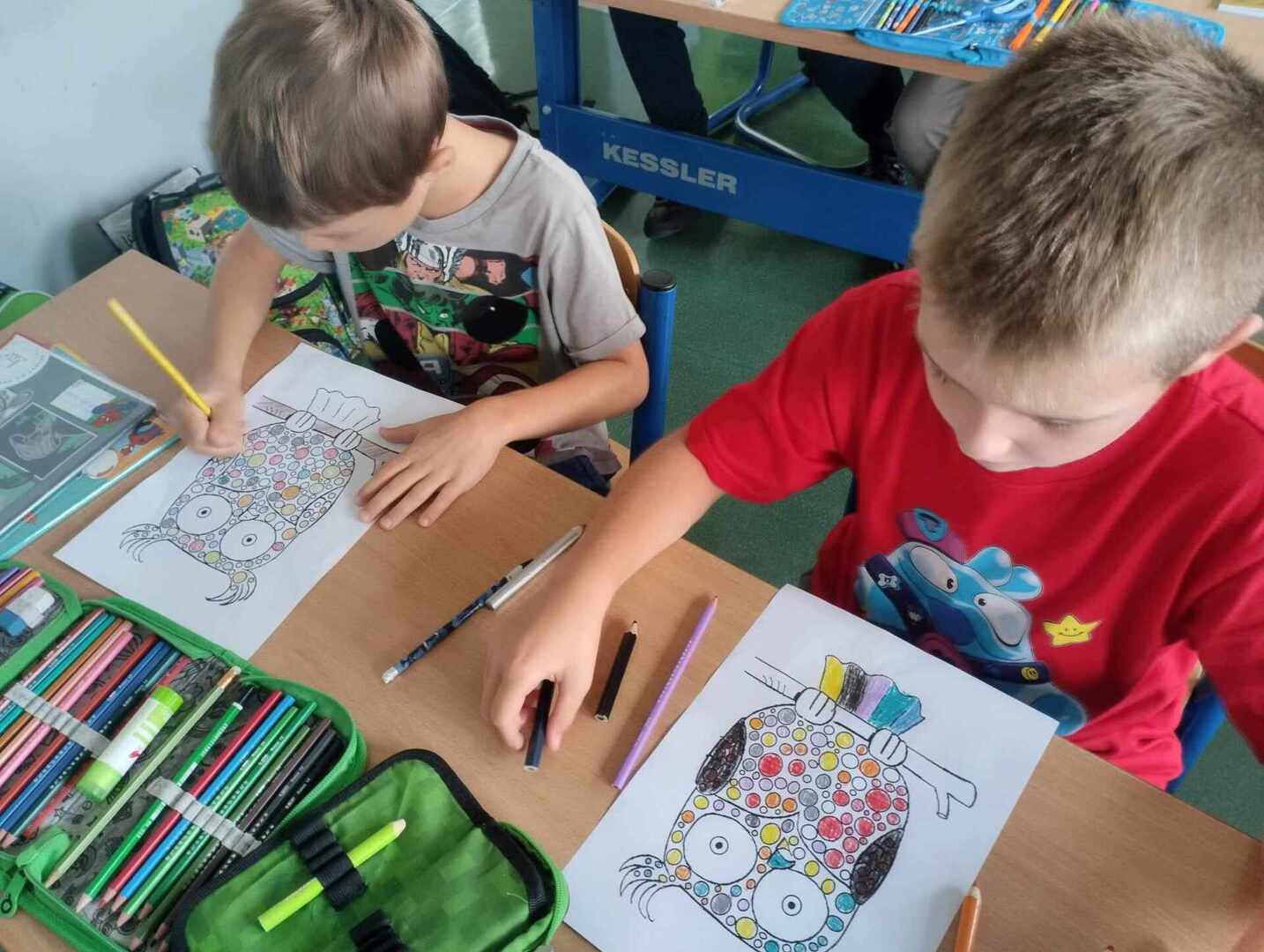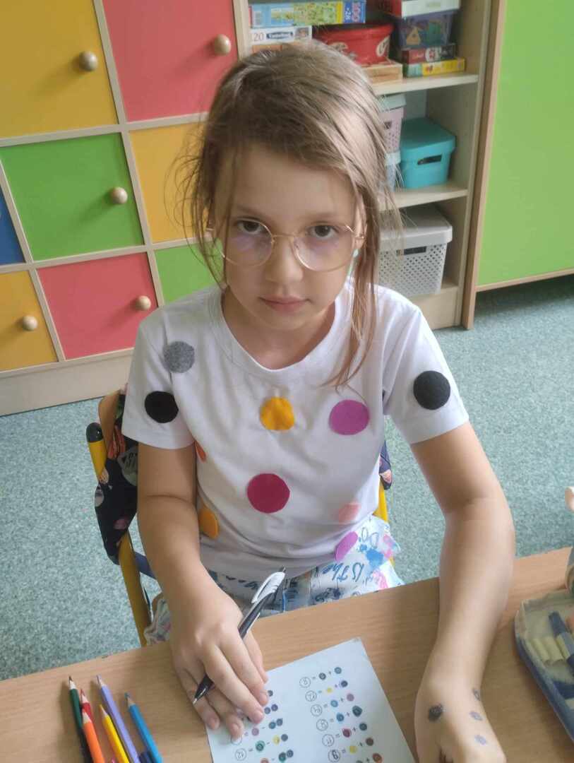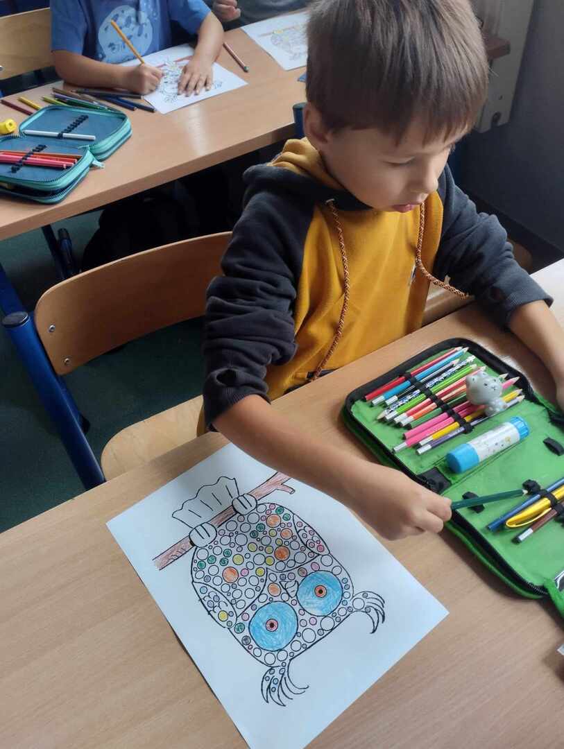Tego dnia obowiązywały ubrania w kropki. W każdej klasie odbyły się warsztaty, podczas których królowała dobra zabawa. Dzieci chwaliły się swoimi talentami, opowiadały o swoich pasjach i sukcesach. Wykonali kropkowane dzieła. W klasie III uczniowie bawili się liczbami zakodowanymi w kropkach.