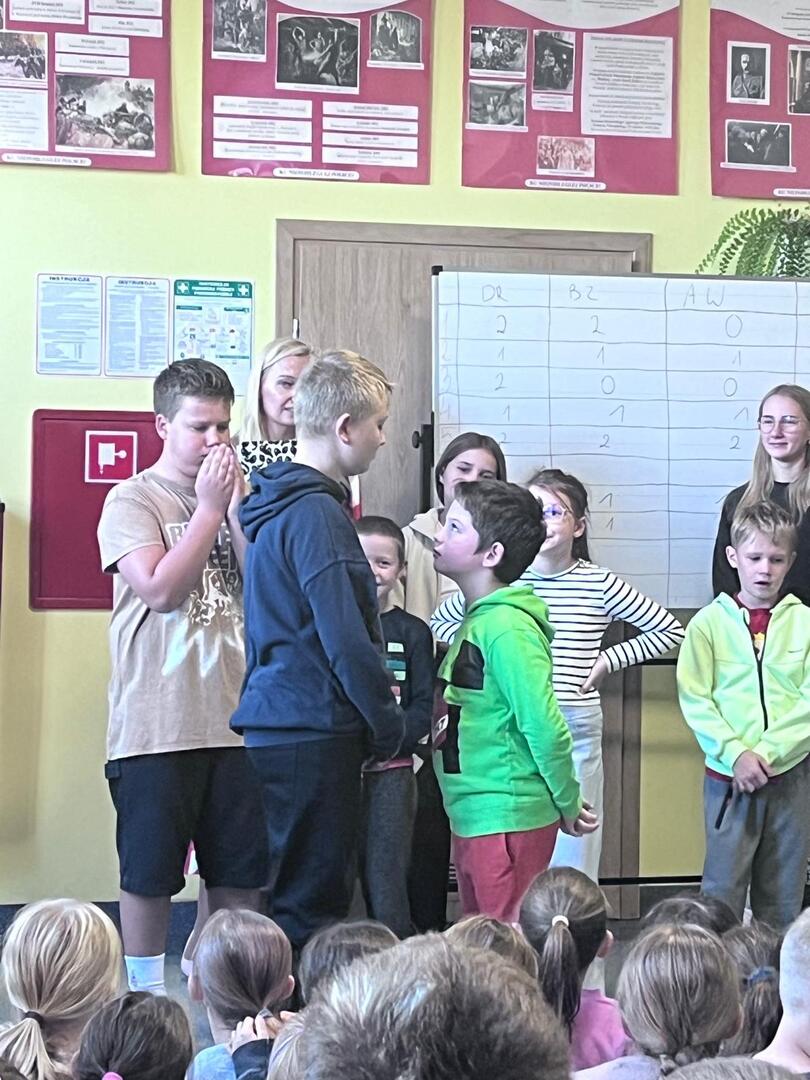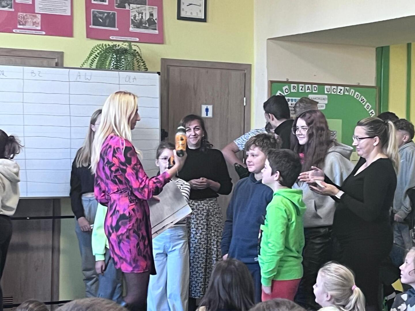 Były upominki i słodki poczęstunek w klasach. Samorząd Uczniowski przygotował zabawny quiz, w którym chłopcy wspierani przez dziewczyny oraz wybrane nauczycielki i dyrektora odpowiadali na pytania nie zawsze dotyczące stereotypowo męskich tematów. Wszyscy świetnie się bawili, a niektórzy mieli okazję poznać się bliżej z opalarką, miernikiem czy wiertarkowkrętarką, a także szminką ;).