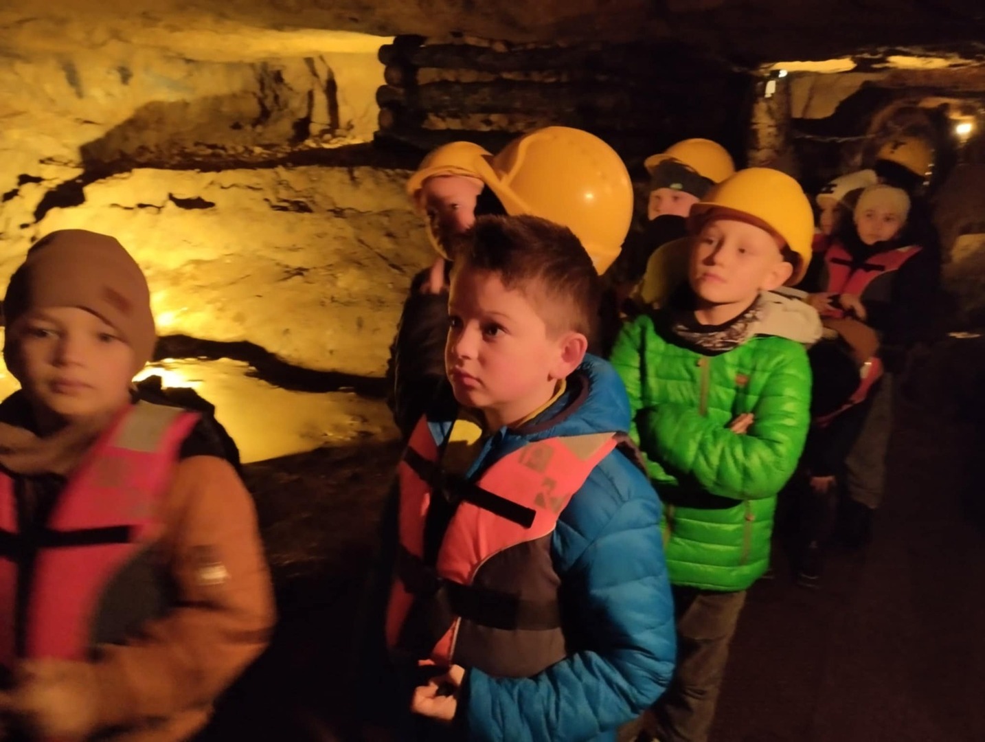 Uczniowie w trakcie wycieczki odbyli trasę turystyczną, na którą składał się: film w sali kinowej, zwiedzanie nowoczesnego muzeum multimedialnego, spacer podziemnymi korytarzami i rejs łodzią po podziemnej rzece.