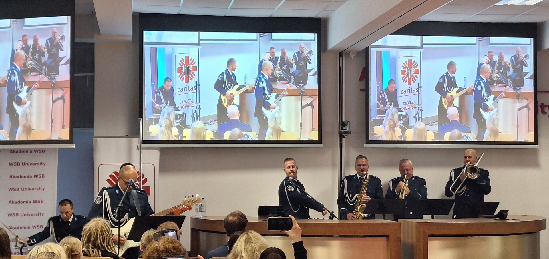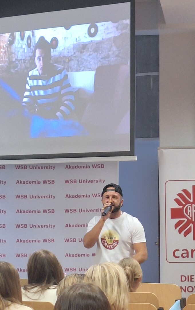 W piatek 25 października wolontariusze naszej szkoły uczestniczyli w uroczystym otwarciu programu Akademia Wolontariatu - Aktywny Wolontariat na Start organizowanym przez Caritas Diecezji Sosnowieckiej i Akademię WSB w Dąbrowie Górniczej. Podczas tego wydarzenia ósmoklasiści wykazali się kreatywnością w praktycznych warsztatach „Tworzenie innowacyjnych pomysłów na inicjatywy wolontariackie metodą Desigh Thinking”. Wysłuchali też wykładu „Deep Fake: Prawda, Fałsz i Przyszłość Mediów Cyfrowych” oraz mieli okazję wziąć udział w koncercie Orkiestry Reprezentacyjnej Komendy Wojewódzkiej Policji w Katowicach oraz Arkadio, który podzielił się swoją historią, motywując młodzież do pomagania innym.