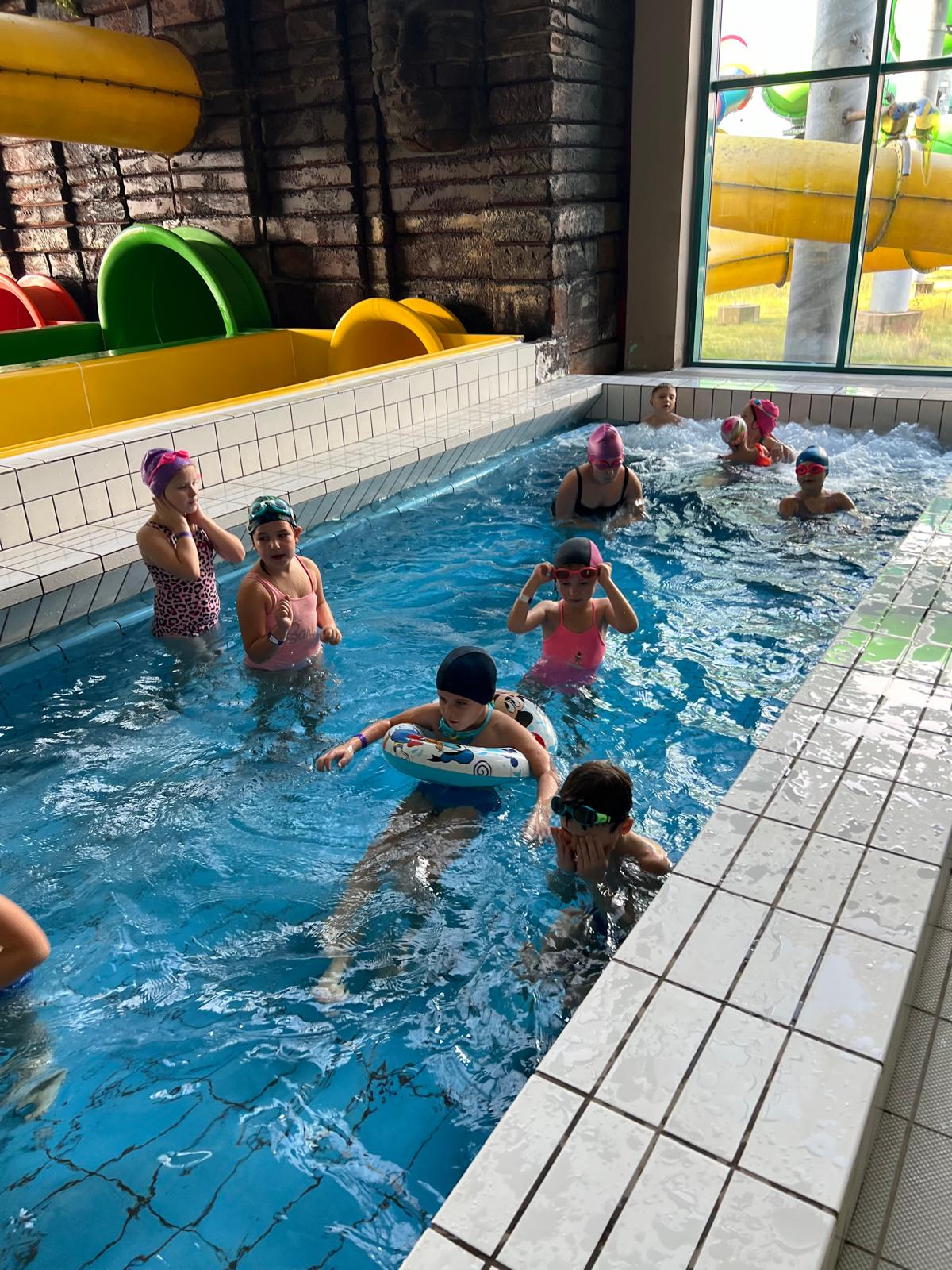 Przez 10 kolejnych czwartków, od września 2024 r. uczniowie klasy I, II i III ZSP w Sączowie uczestniczyli w zajęciach sportowych z zakresu nauki pływania odbywających się w Parku Wodnym w Tarnowskich Górach. Zajęcia prowadzone były przez instruktorów posiadających kwalifikacje i uprawnienia do pracy z dziećmi.