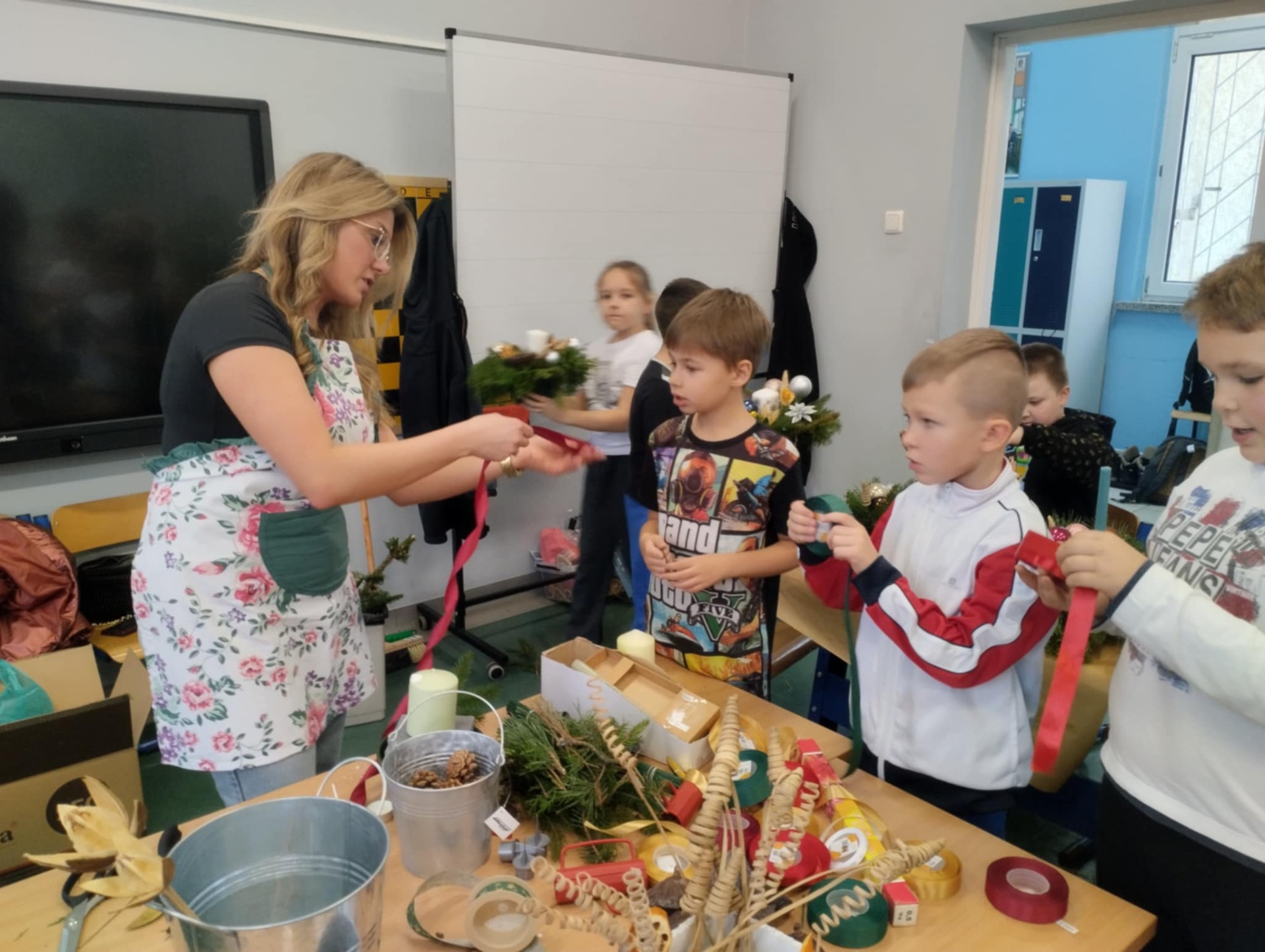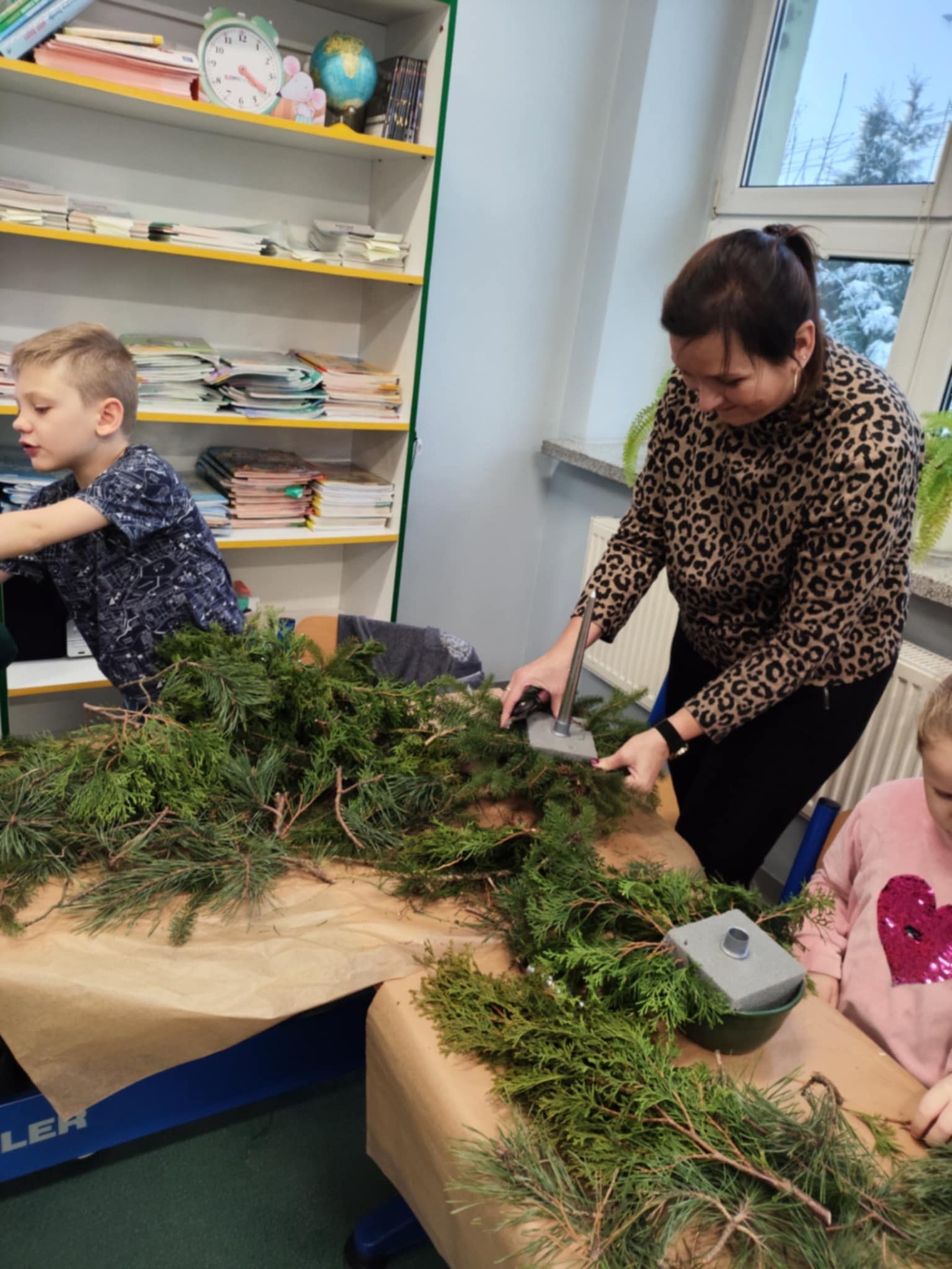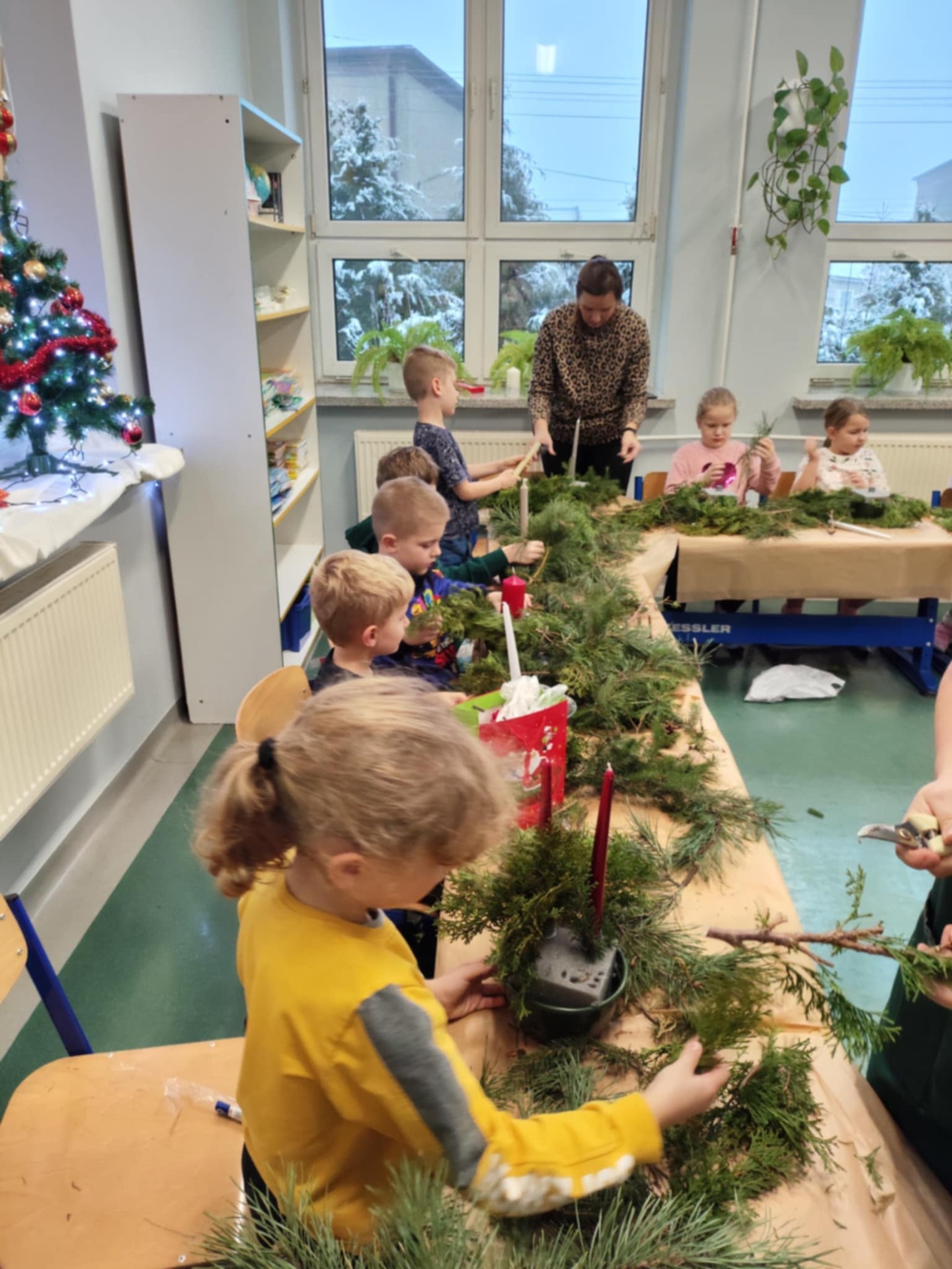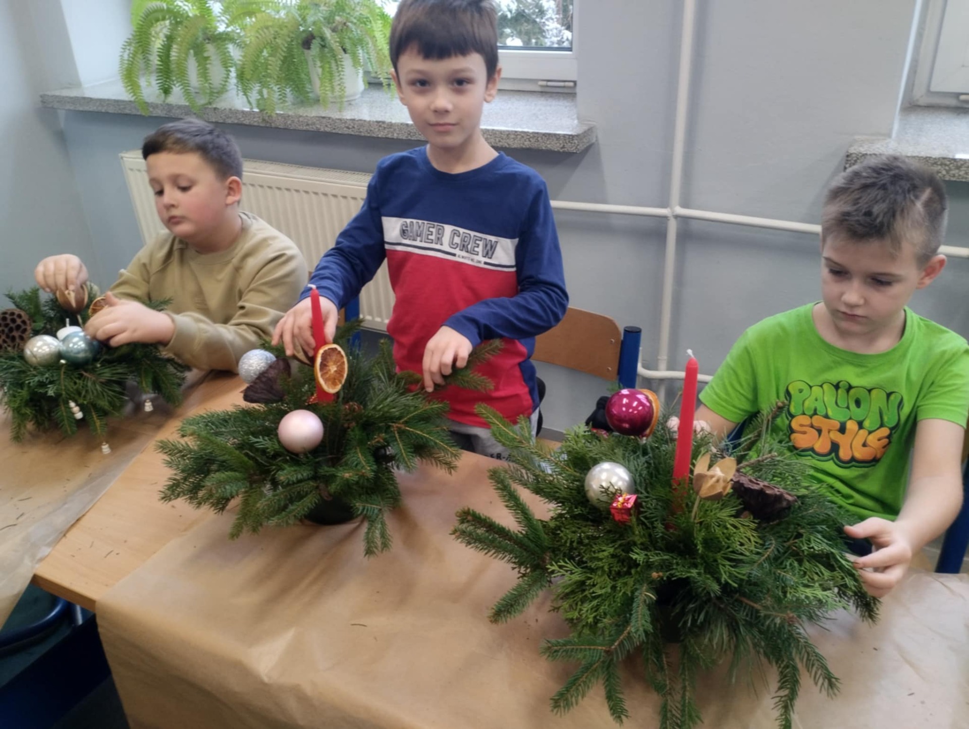 W trakcie zajęć uczniowie tworzyli świąteczne dekoracje z żywych gałązek jodły, świerku, sosny i tui. Całość kompozycji dopełniały świąteczne ozdoby: bombki, suszone cytrusy, naturalne okazy przyrodnicze, kokardki i świeczki.