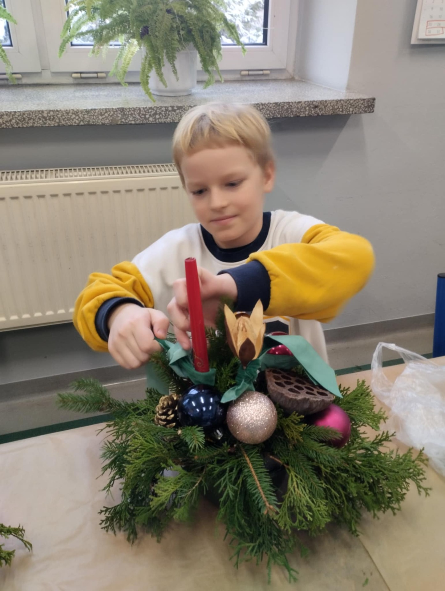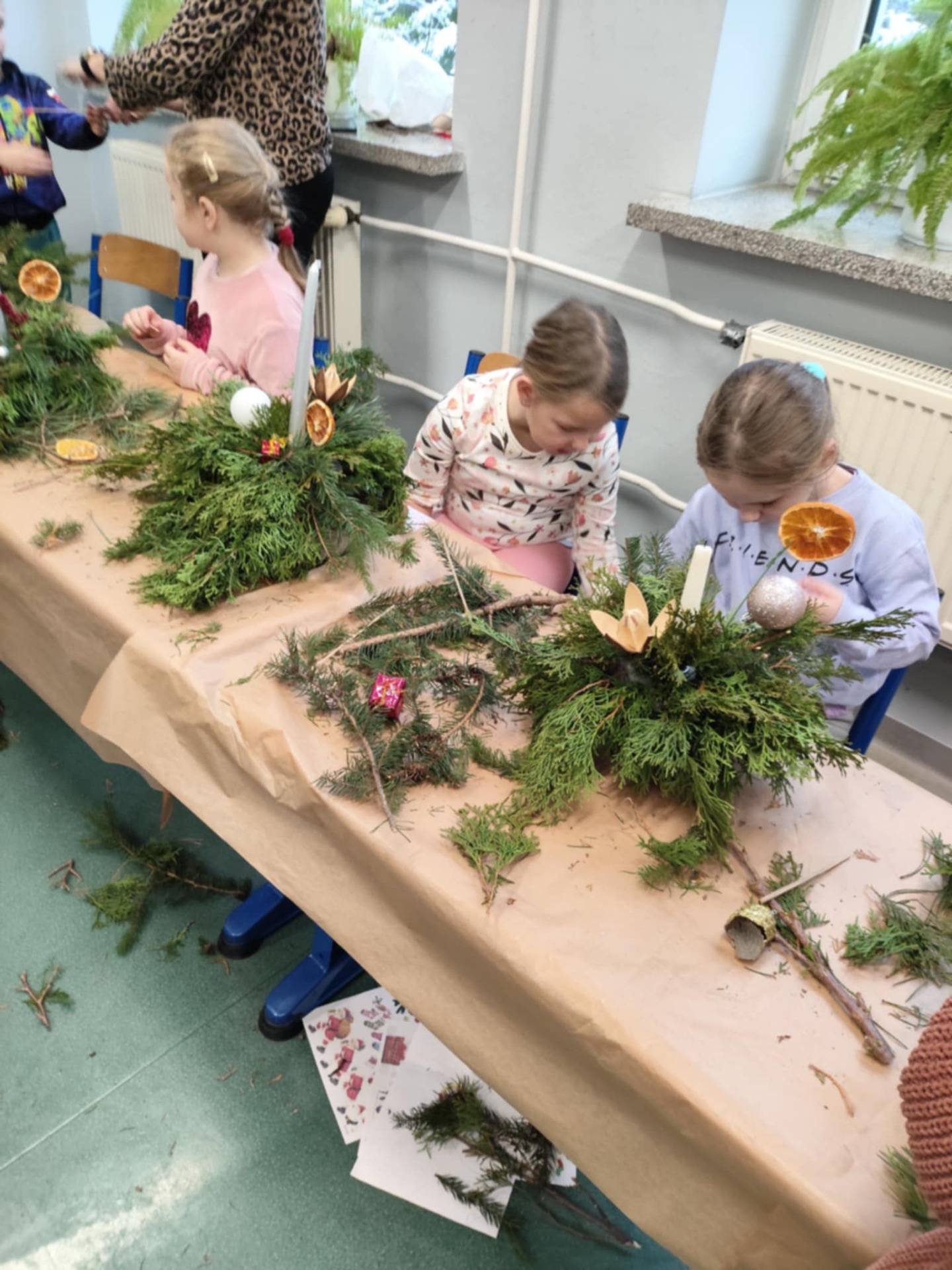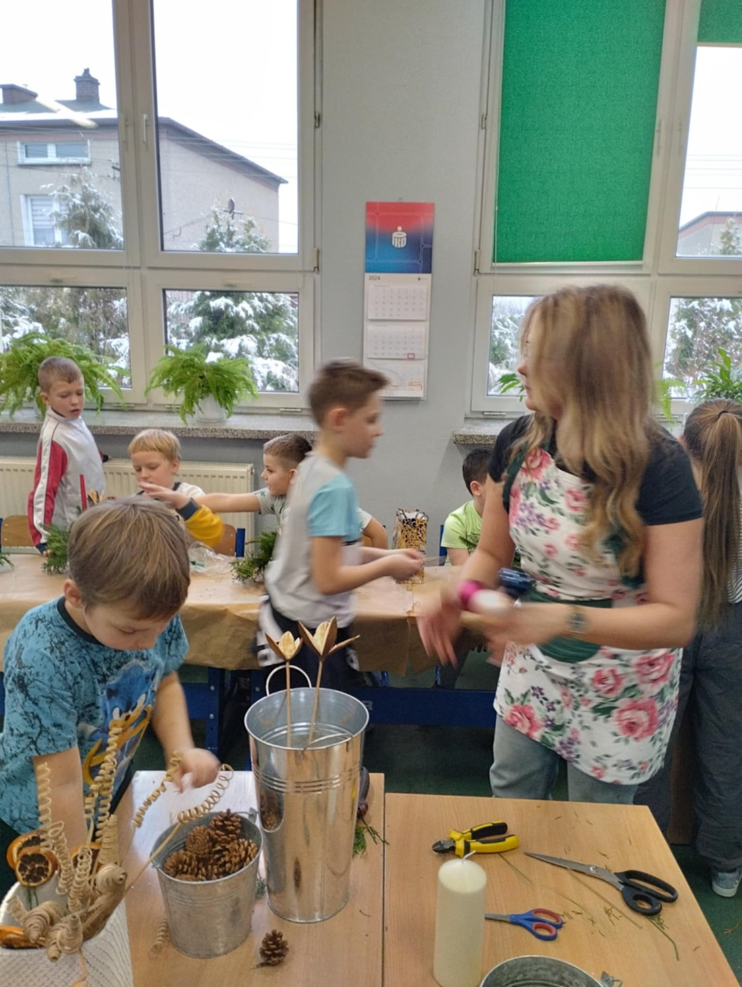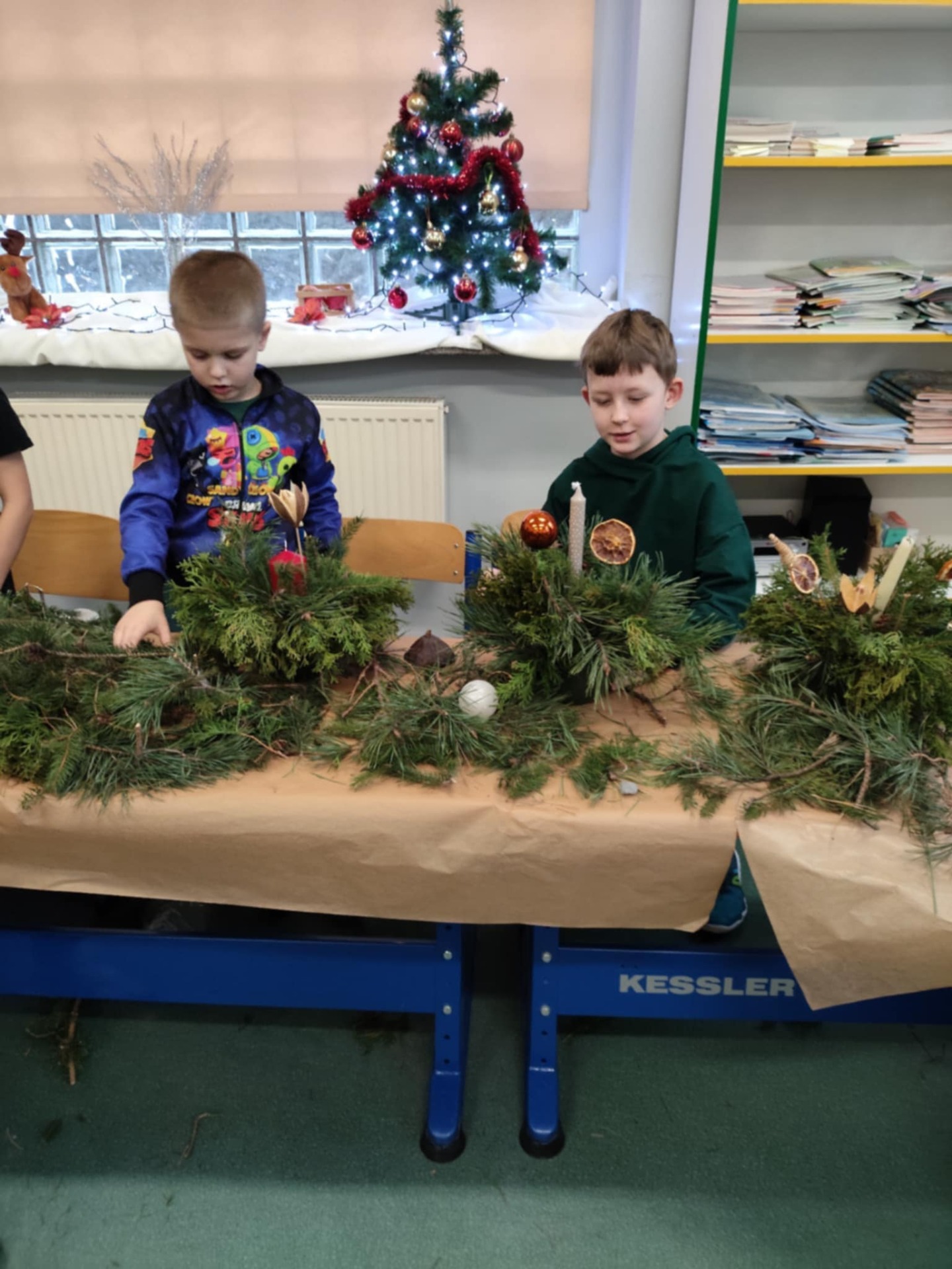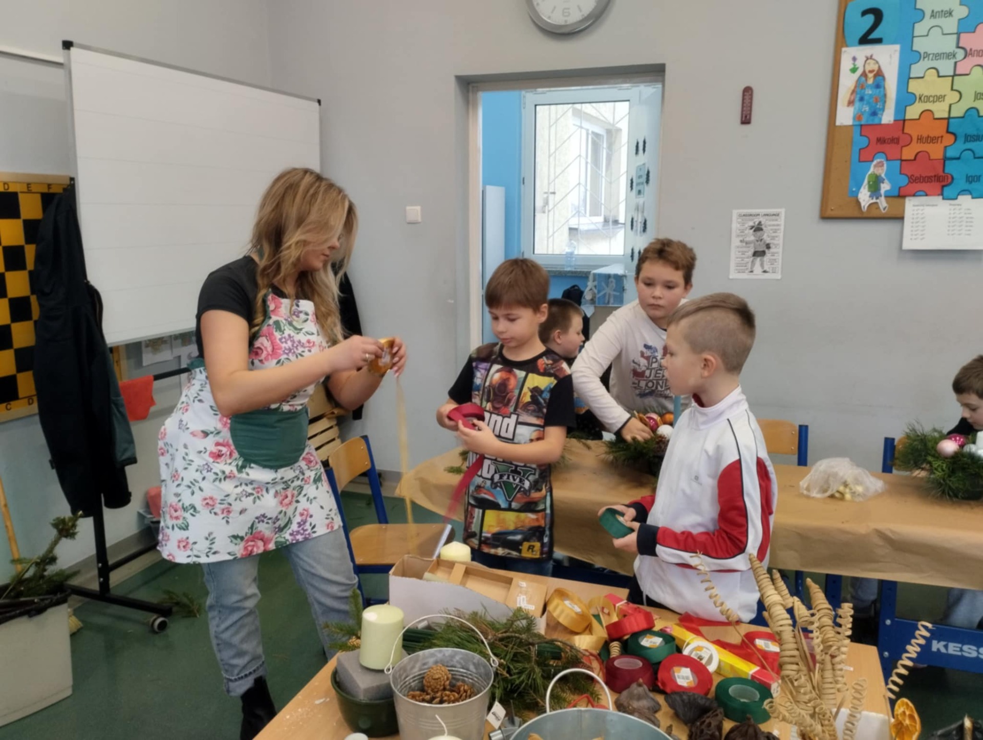W trakcie zajęć uczniowie tworzyli świąteczne dekoracje z żywych gałązek jodły, świerku, sosny i tui. Całość kompozycji dopełniały świąteczne ozdoby: bombki, suszone cytrusy, naturalne okazy przyrodnicze, kokardki i świeczki.