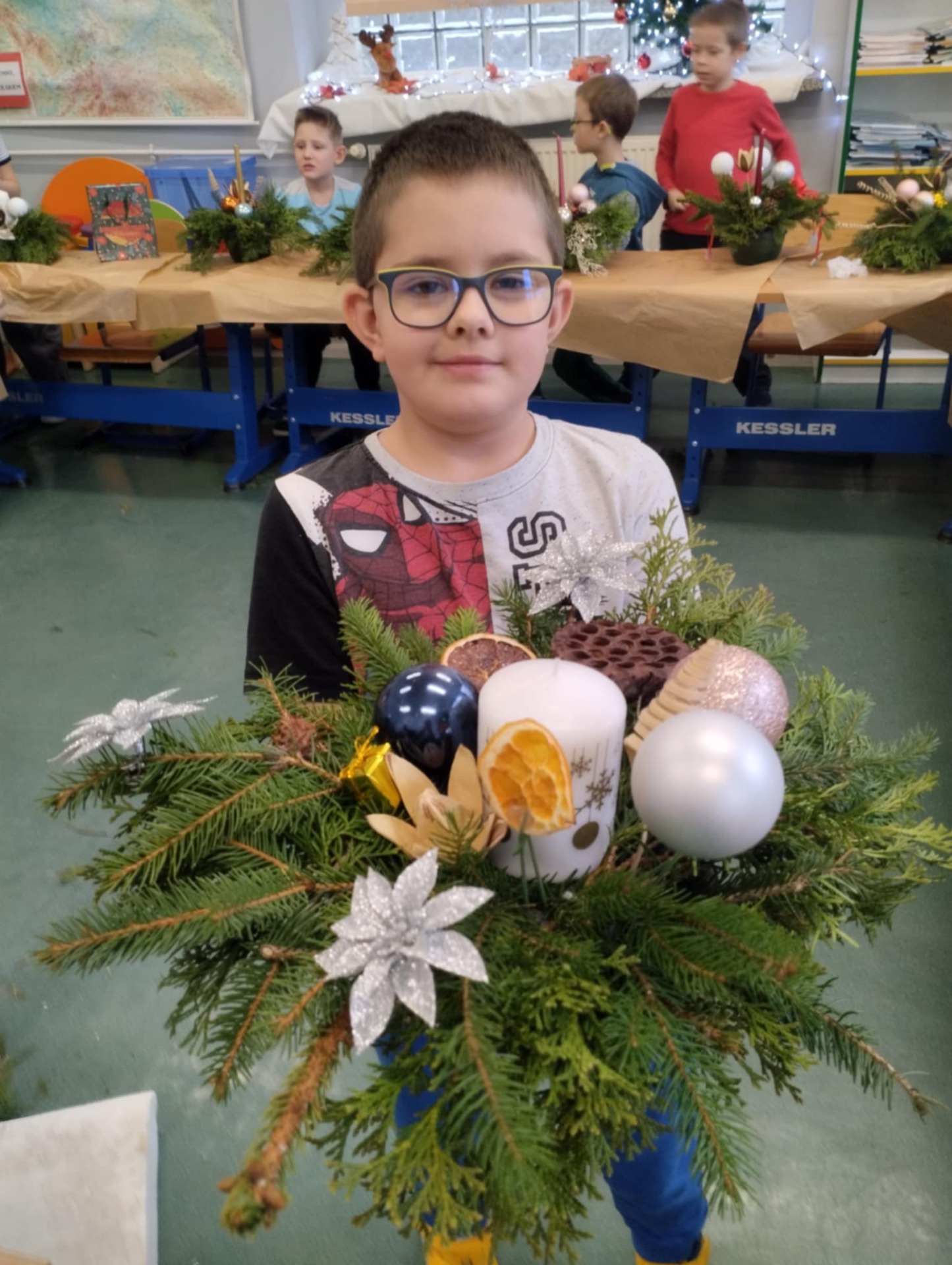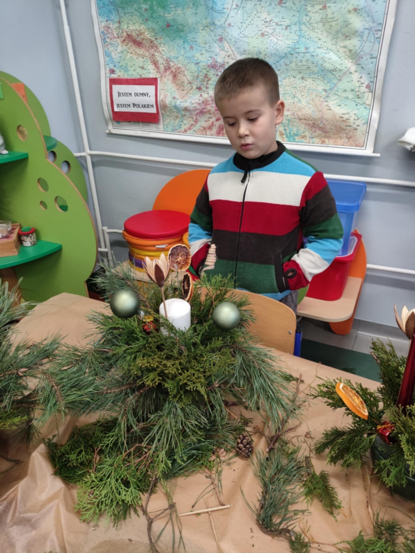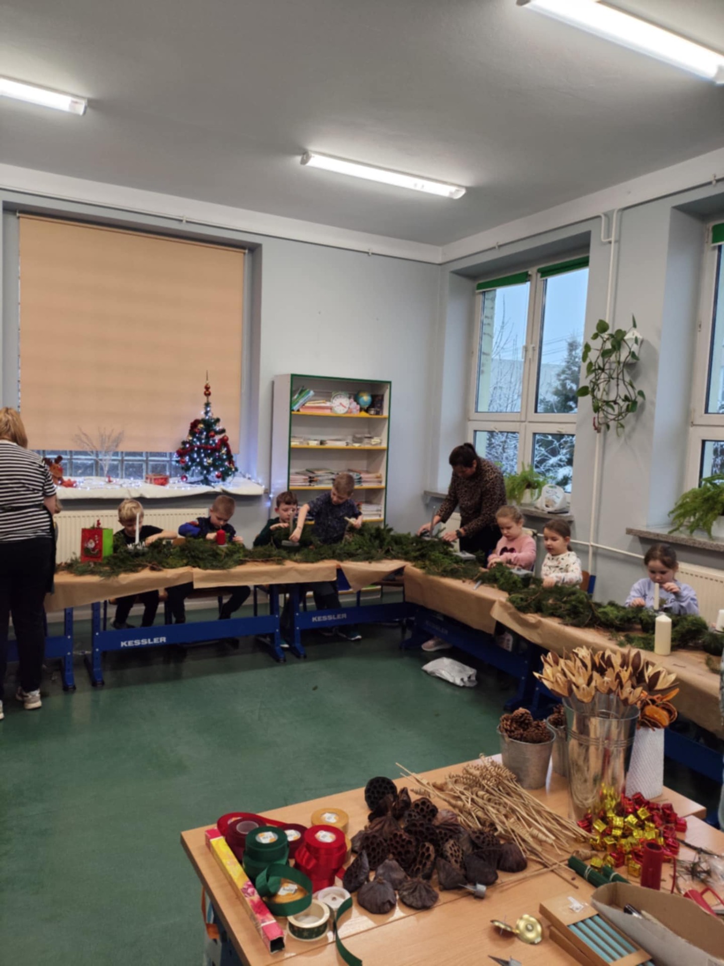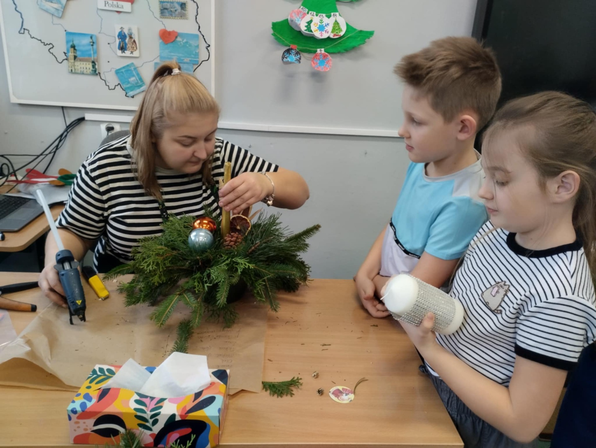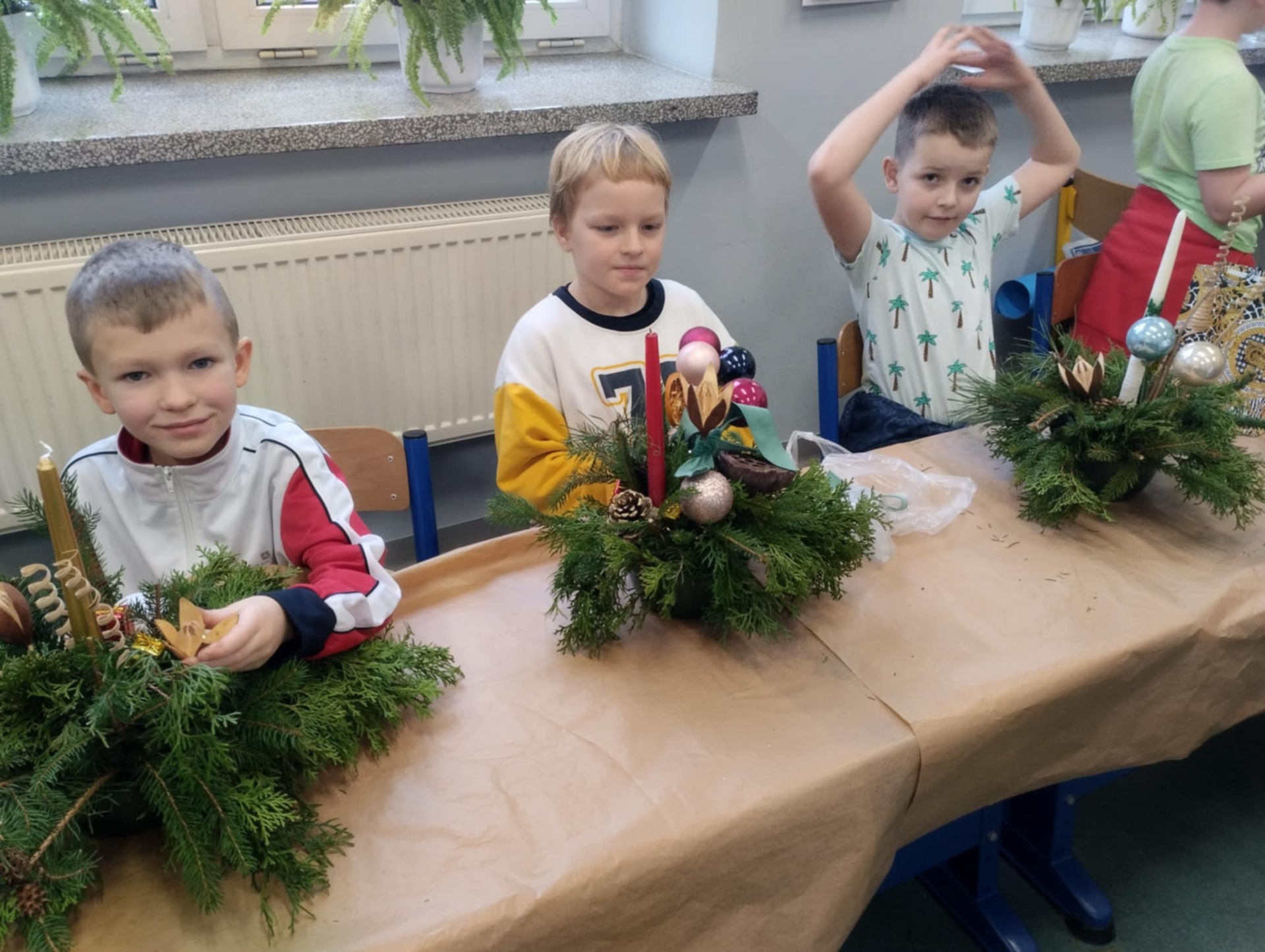 W trakcie zajęć uczniowie tworzyli świąteczne dekoracje z żywych gałązek jodły, świerku, sosny i tui. Całość kompozycji dopełniały świąteczne ozdoby: bombki, suszone cytrusy, naturalne okazy przyrodnicze, kokardki i świeczki.