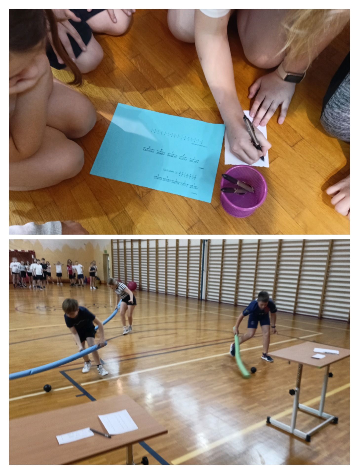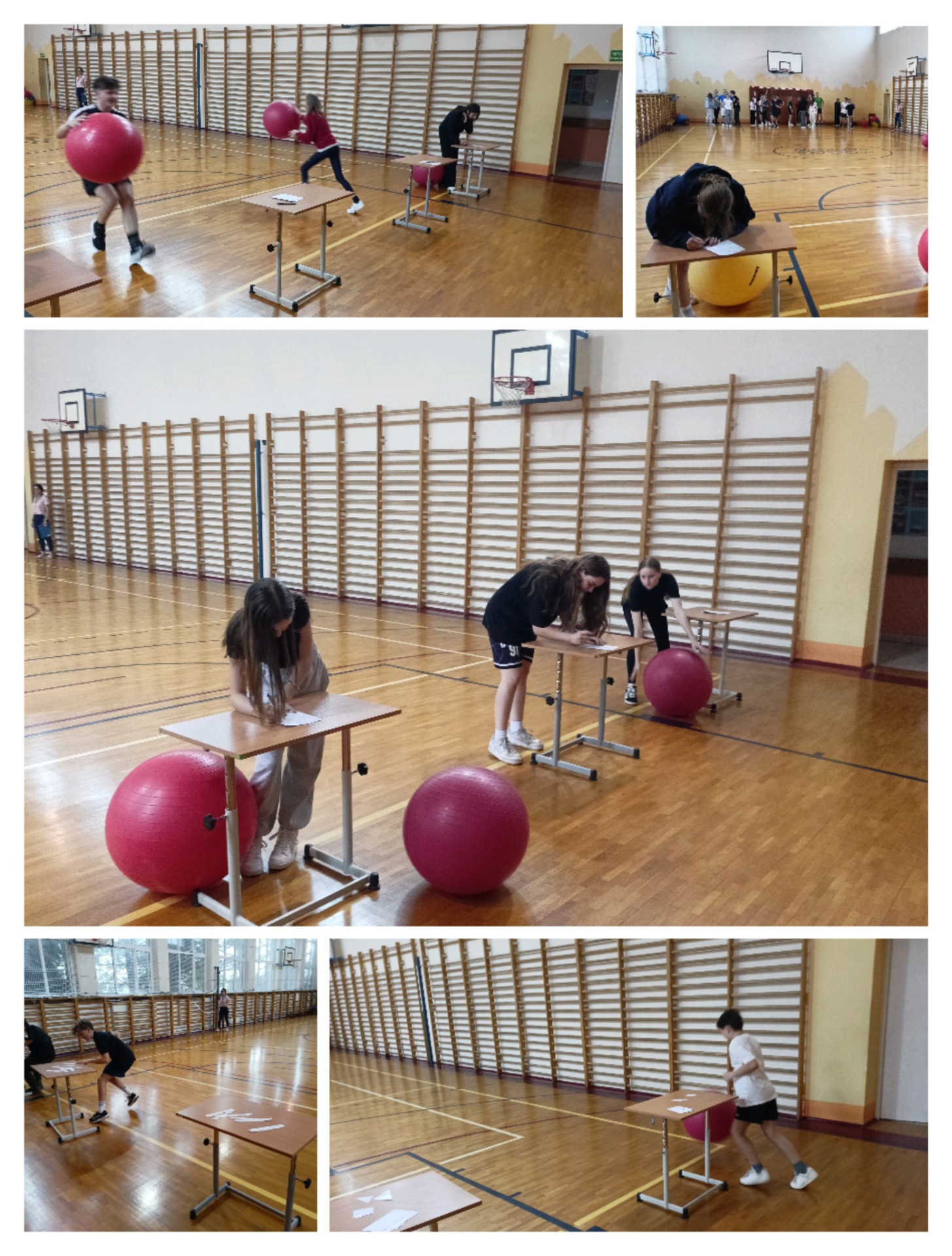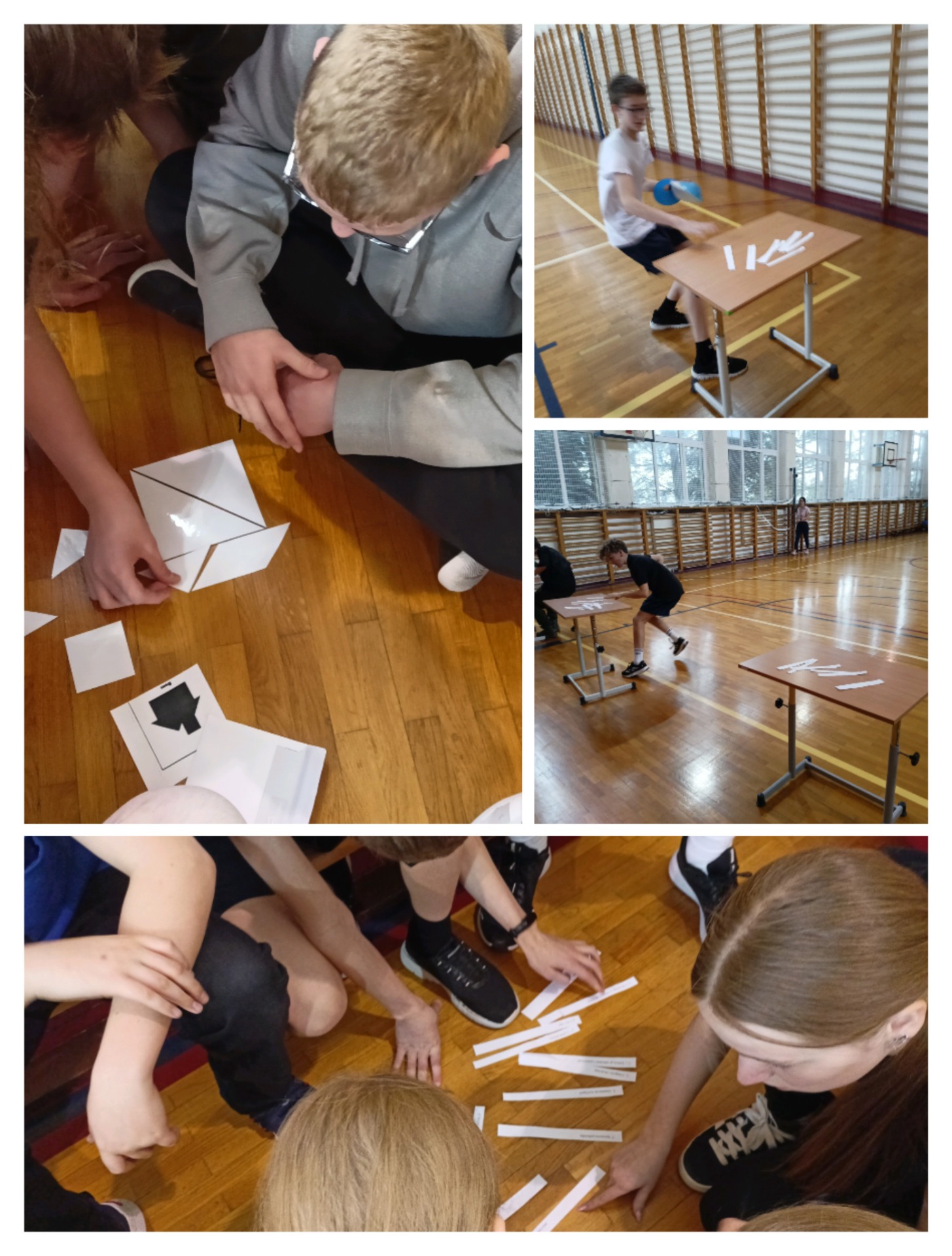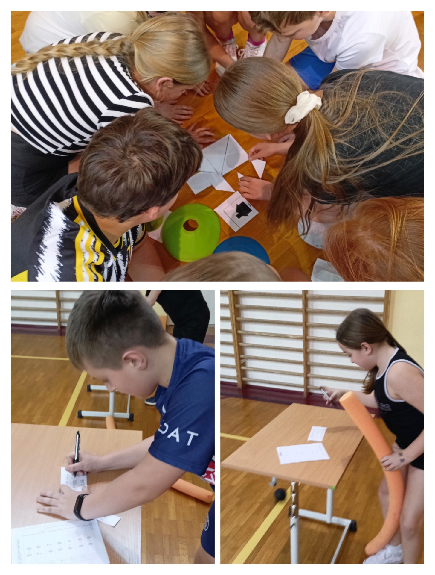 Z okazji Dnia Matematyki odbyły się w naszej szkole zawody matematyczno-sportowe dla klas 4-8. Podczas rywalizacji uczestnicy mogli wykazać się sprawnością fizyczną, a przy tym popisać się umiejętnością szybkiego liczenia, sprytem i logicznym myśleniem. Uczniowie układali tangram, odczytywali tekst zapisany szyfrem ułamkowym, rozwiązywali zagadkę, która pozwoliła otworzyć kłódkę, a także napisać skojarzenia matematyczne do kilku powiedzeń.