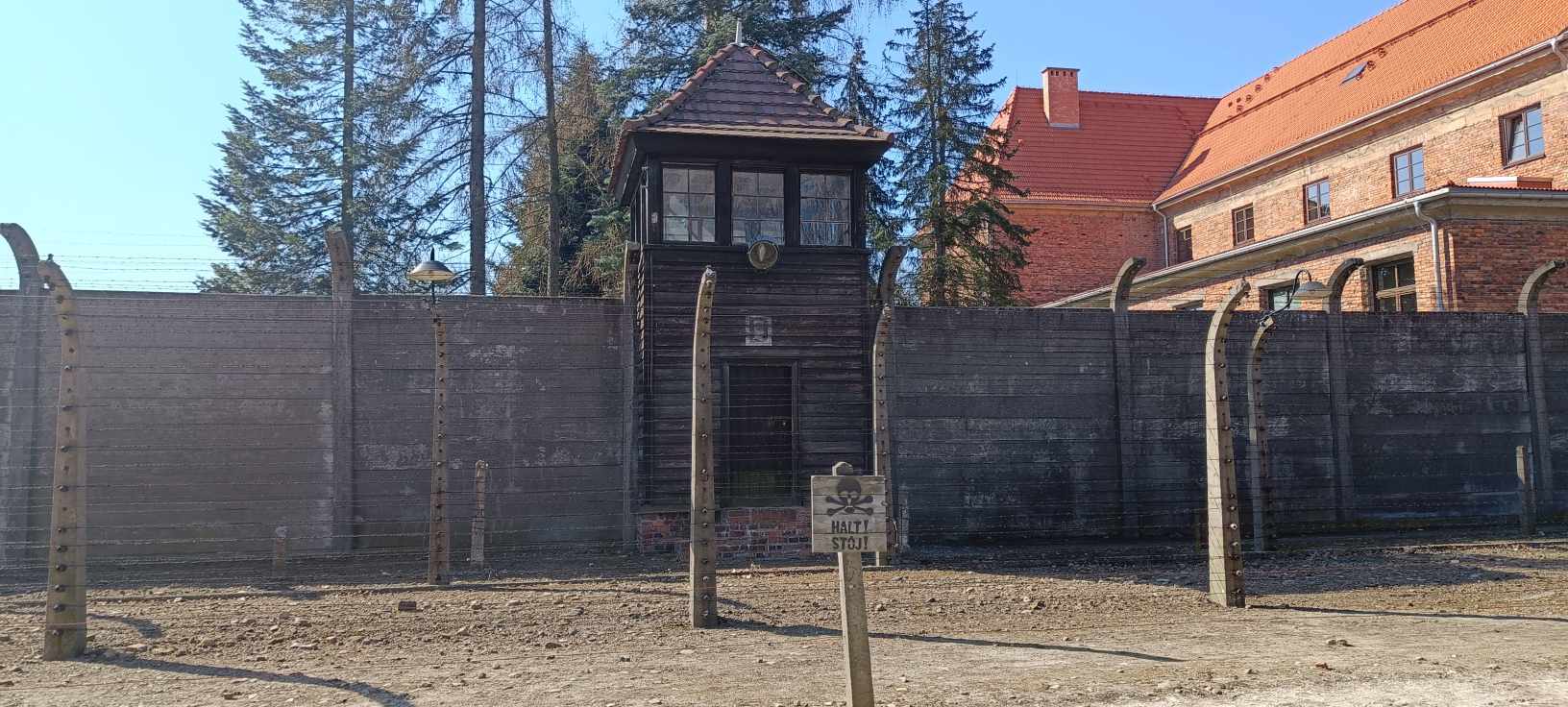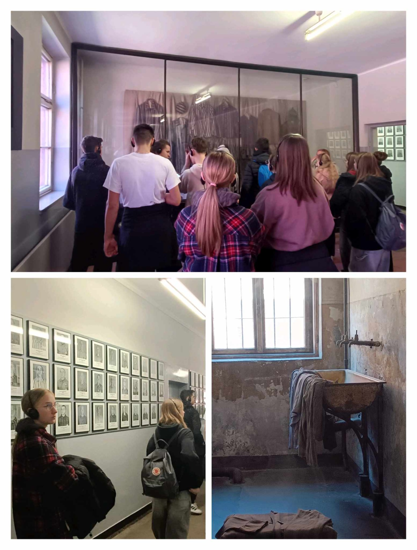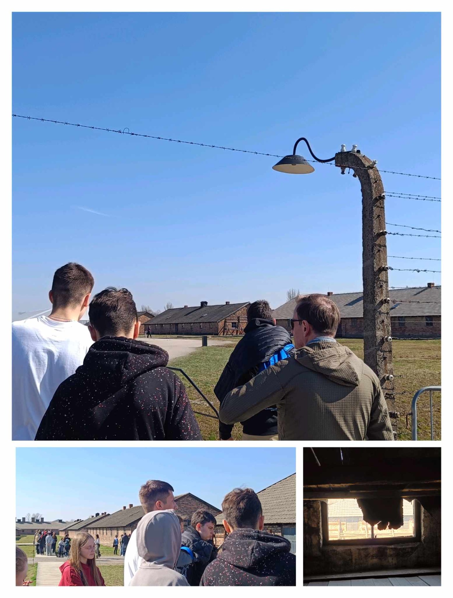 "Podobnie jak więźniowie przekroczyliśmy bramę z umiejscowionym nad nią napisem „ARBEIT MACHT FREI” (Praca czyni wolnym). Jest ona jednym z symboli obozu oraz cierpienia milionów istnień ludzkich. Przed nami ceglane baraki obozowe, w których obecnie znajdują się wystawy tematyczne. Dzięki pani edukator poznaliśmy w nich życie więźniów. Głód, eksperymenty medyczne, terror, nadludzka praca, choroby, egzekucje, komory gazowe, cyklon B – tego wszystkiego doświadczali przywożeni tutaj Polacy, Żydzi, Romowie oraz przedstawiciele innych nacji. Ze zdjęć zawieszonych na ścianach zerkały na nas osoby, które trafiły do tego „piekła”. Odebrano im wszystko, nawet imię i nazwisko zastępując obozowym numerem. Duże wrażenie zrobiły na nas sterty walizek, protez, misek, okularów oraz tysiące par butów.