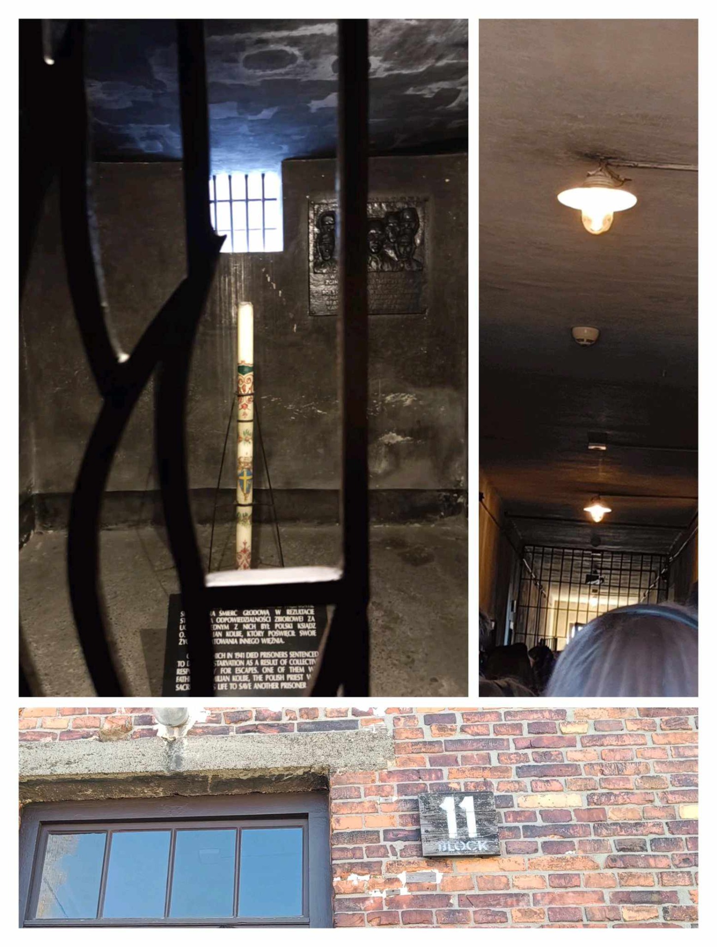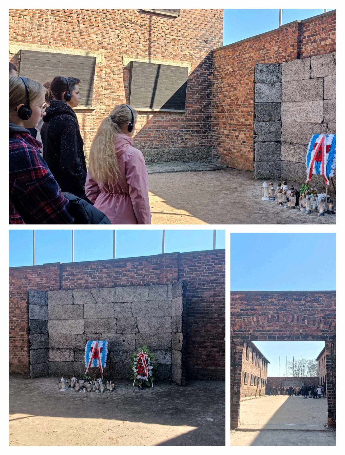 Na chwilę zatrzymaliśmy się pomiędzy blokami 10 i 11 aby minutą ciszy oddać hołd pomordowanym. Ściana, pod którą składane są kwiaty oraz płoną znicze, była miejscem, gdzie rozstrzeliwano więźniów. W ciszy przemierzaliśmy piwniczne korytarze tzw. „Bloku Śmierci”, gdzie znajdowały się cele śmierci. W jednej z nich zginął o. Maksymilian Kolbe, franciszkanin, który zgłosił się, by dobrowolnie oddać życie za współwięźnia Franciszka Gajowniczka, jednego z dziesięciu skazanych na śmierć głodową w odwecie za ucieczkę Polaka. Ostatnim punktem wizyty w Auschwitz I było wejście do komory gazowej oraz krematorium.