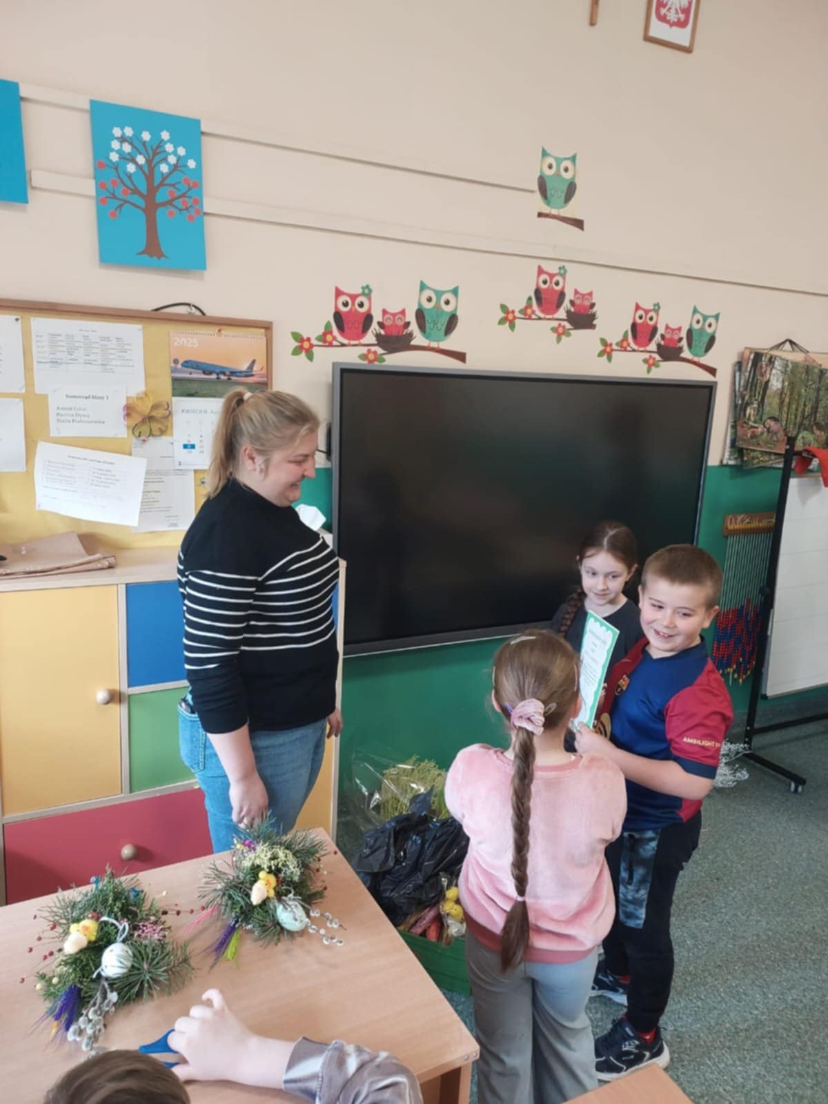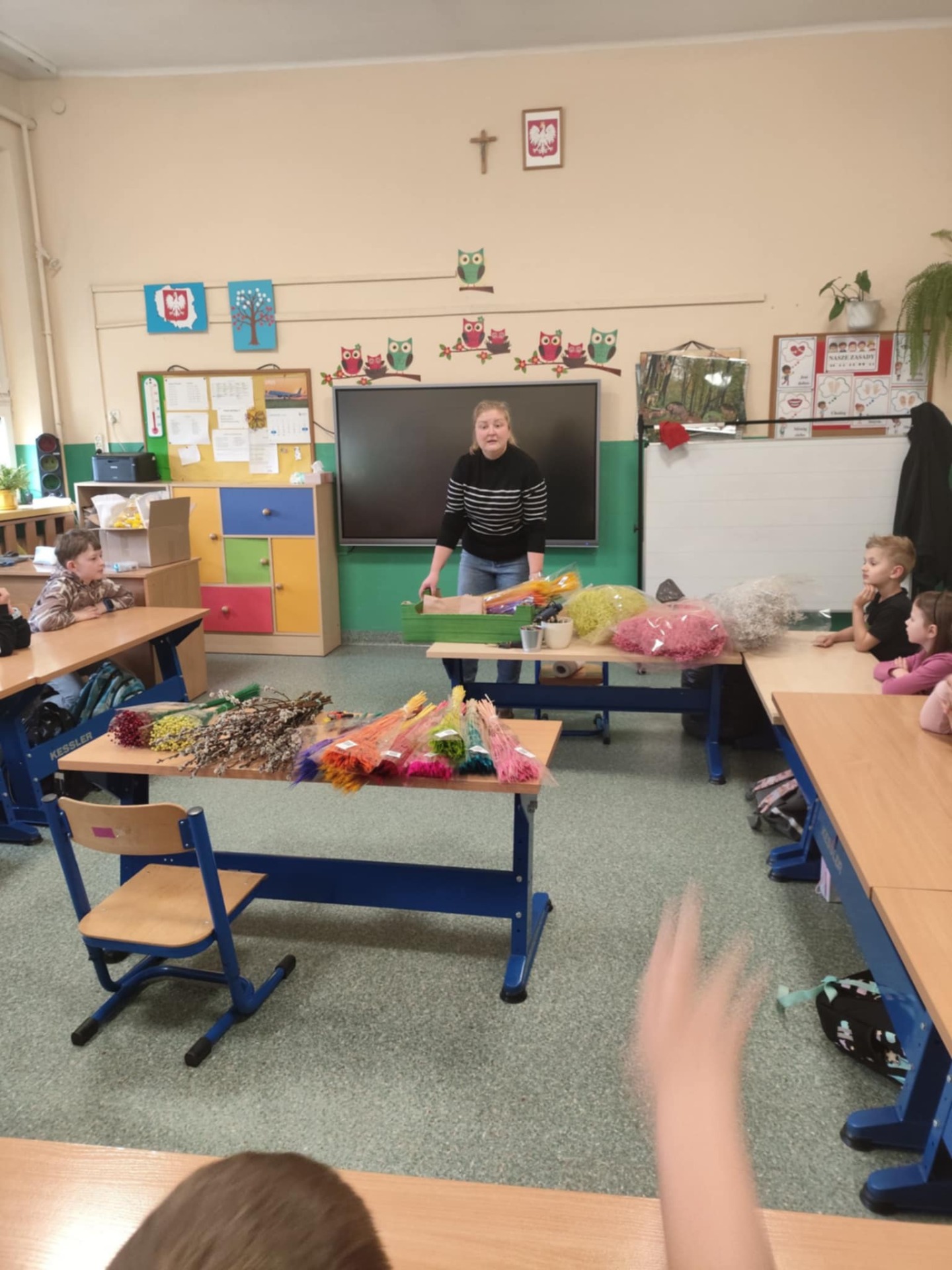 We wtorek 8 kwietnia 2025 roku, w klasie I odbyły się warsztaty wielkanocne. Program warsztatów obejmował artystyczne wykonanie wielkanocnych palem. Warsztaty zorganizowała i prowadzała florystka pani Emilia Jaskóła, mama Michalinki, uczennicy klasy I.