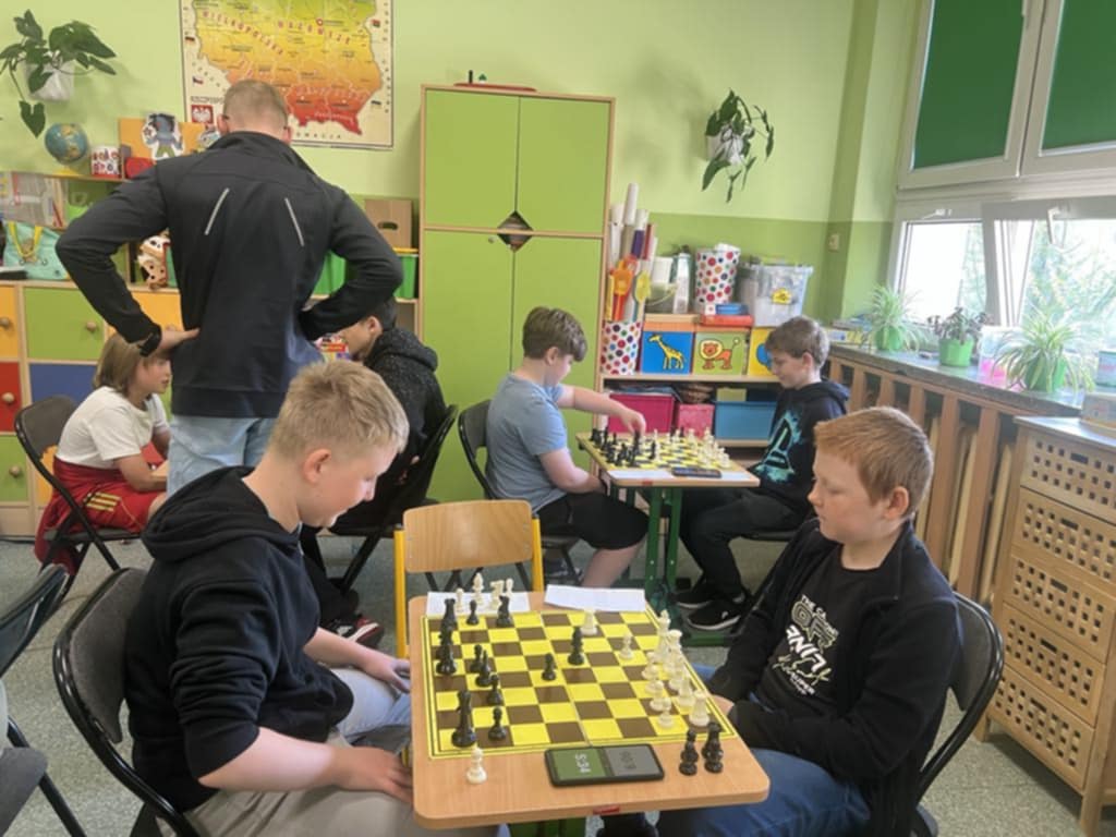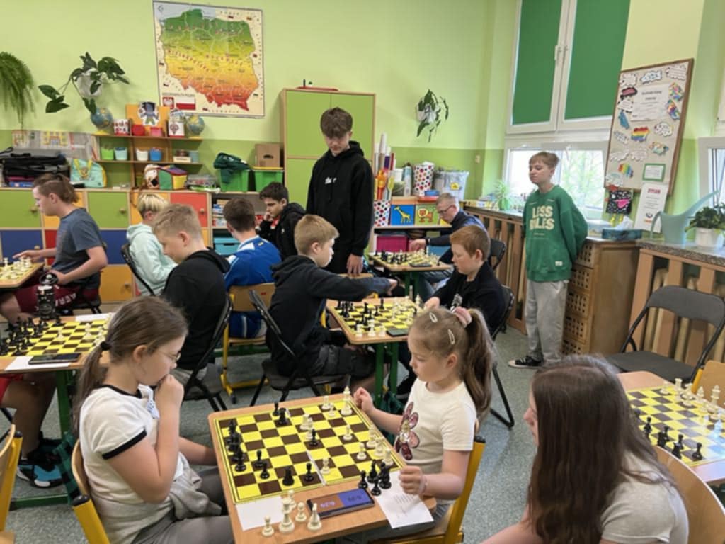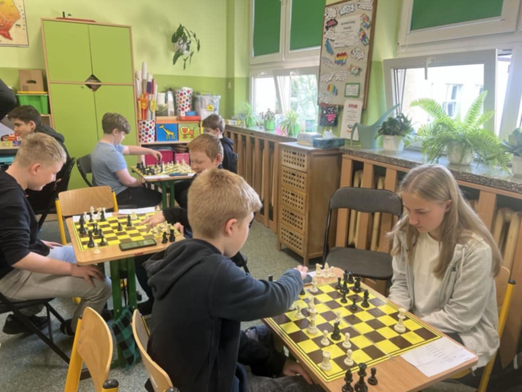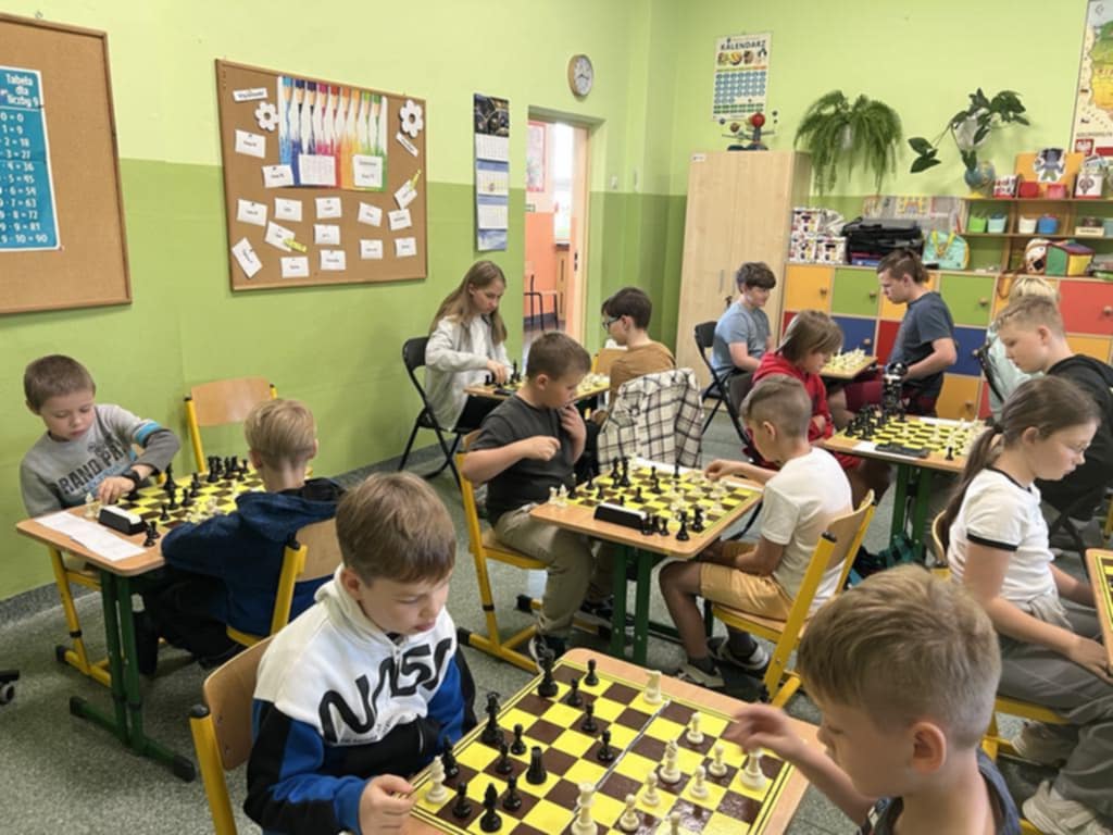 W dniu 23 kwietnia 2025r. w naszej szkole odbył się Wiosenny Turniej Szachowy. Najlepsi klasowi szachiści tworzyli trzyosobowe drużyny. Rozgrywki rozegrano systemem „każdy z każdym”, na czas 7 min 30s. Klasy I-III rozegrały 6 rund, a klasy IV-VIII rozegrały 9 rund. Uczniowie zdobywający 1 miejsce w kategorii indywidualnej zostali nagrodzeni pucharami, a z miejsca drugiego i trzeciego medalami. Wszyscy uczestnicy turnieju otrzymali dyplomy i nagrody w postaci szachowych gadżetów, które ufundowała Rada Rodziców. Serdecznie gratulujemy zwycięzcom oraz wszystkim graczom opanowania strategii i taktyki tej wyjątkowej dyscypliny sportu, która wymaga myślenia logicznego.