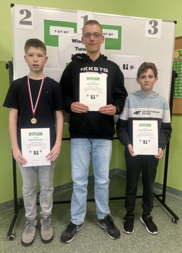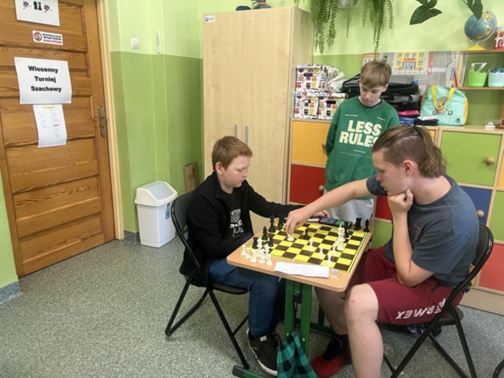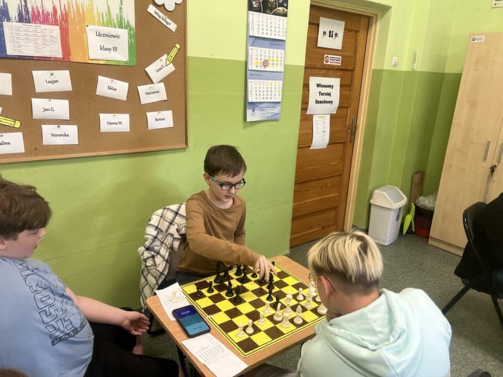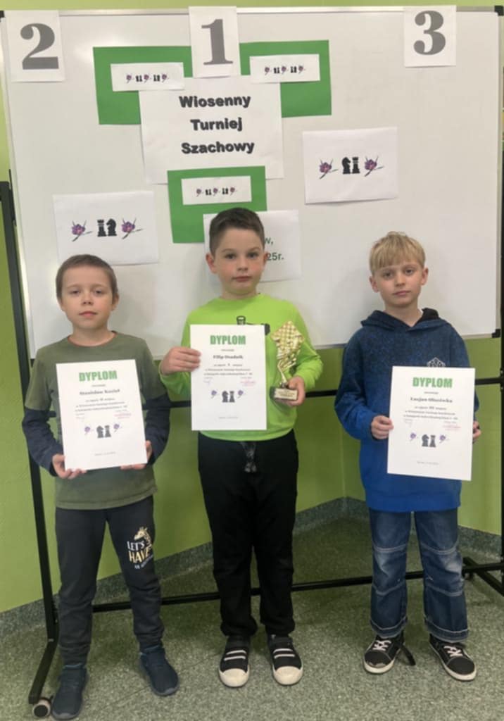 W dniu 23 kwietnia 2025r. w naszej szkole odbył się Wiosenny Turniej Szachowy. Najlepsi klasowi szachiści tworzyli trzyosobowe drużyny. Rozgrywki rozegrano systemem „każdy z każdym”, na czas 7 min 30s. Klasy I-III rozegrały 6 rund, a klasy IV-VIII rozegrały 9 rund. Uczniowie zdobywający 1 miejsce w kategorii indywidualnej zostali nagrodzeni pucharami, a z miejsca drugiego i trzeciego medalami. Wszyscy uczestnicy turnieju otrzymali dyplomy i nagrody w postaci szachowych gadżetów, które ufundowała Rada Rodziców. Serdecznie gratulujemy zwycięzcom oraz wszystkim graczom opanowania strategii i taktyki tej wyjątkowej dyscypliny sportu, która wymaga myślenia logicznego.