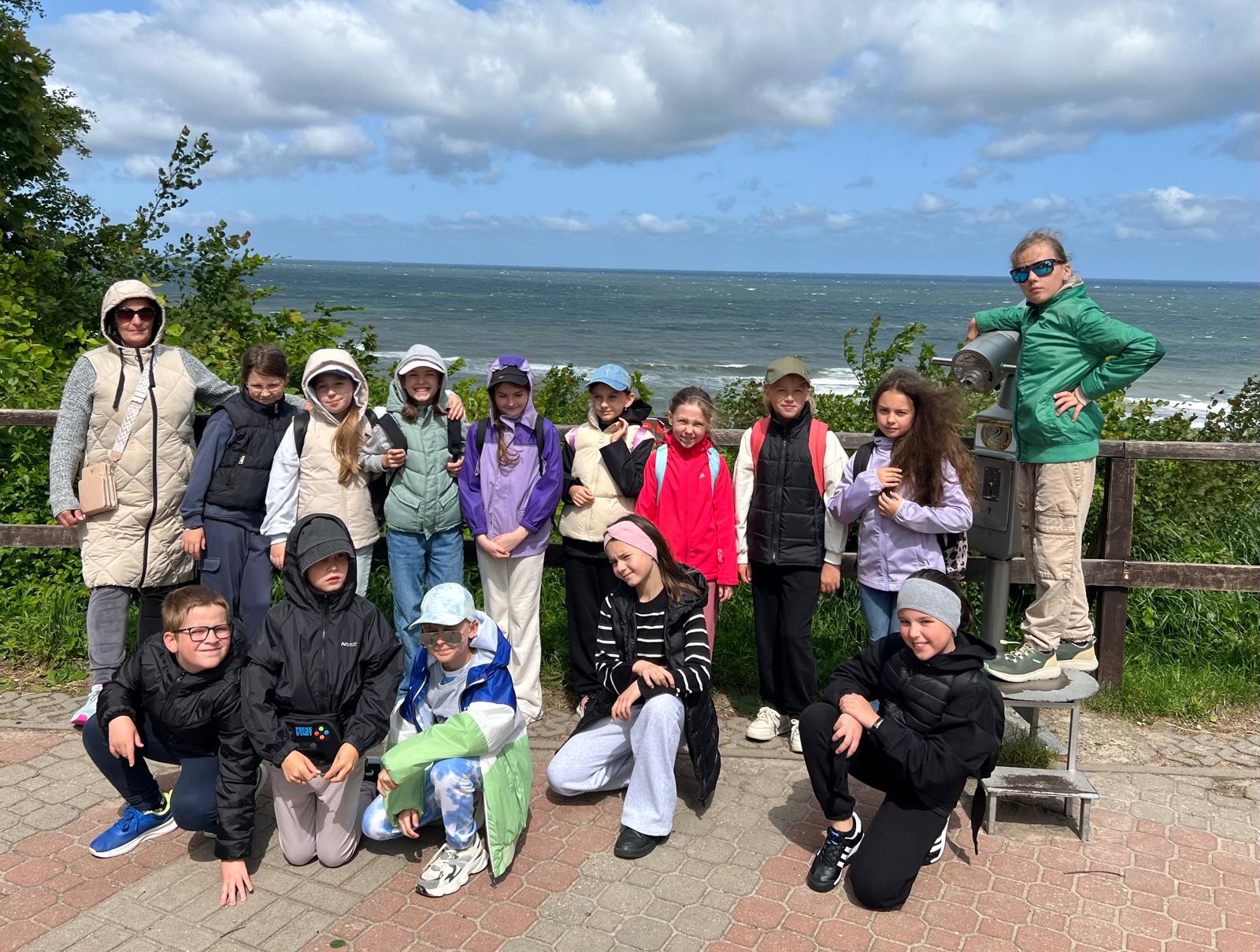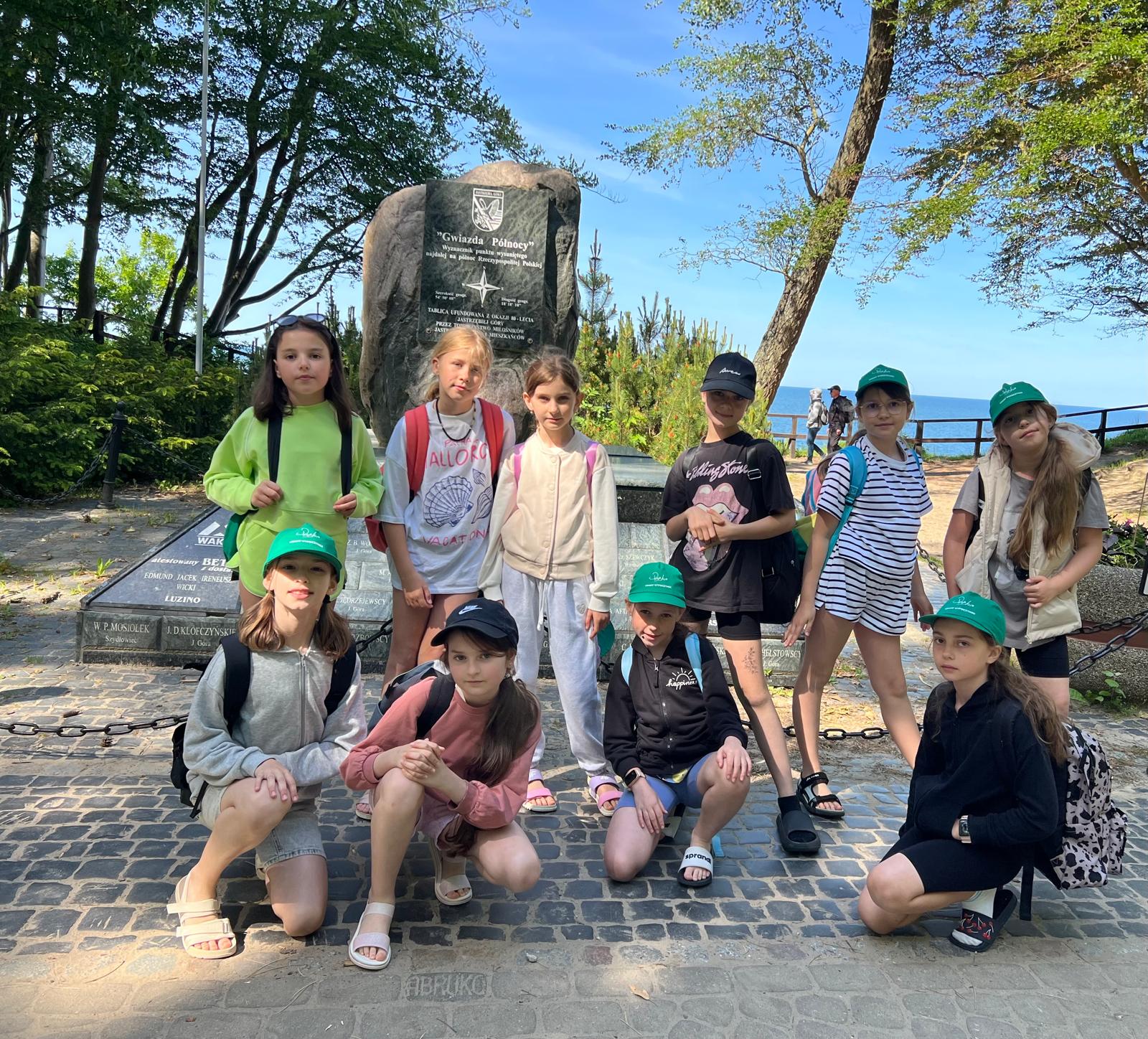 W tym roku szkolnym uczniowie klasy trzeciej wraz z opiekunami p. Elą Koczy i p. Iloną Lazar wyjechali na Zieloną szkołę do Jastrzębiej Góry, która została dofinansowana przez Wojewódzki Fundusz Ochrony Środowiska i Gospodarki Wodnej (WFOŚiGW). Program dziesięciodniowego pobytu organizowanego przez Biuro Podróży „Pinokio” był bardzo ciekawy. Dzieci nie miały czasu na nudę oraz tęsknotę za domem. Była wycieczka z przewodnikiem na Półwysep Helski, a tam rejs statkiem, spacer na początek Polski. Pojechaliśmy do Gdyni, gdzie zwiedziliśmy Akwarium Gdyńskie oraz piękny żaglowiec Dar Pomorza. Zatrzymaliśmy się pod pomnikiem Żagle oraz pomnikiem Morświna, a dzień zakończyliśmy ciekawymi zajęciami w Centrum Nauki Experyment. W kolejnym dniu odwiedziliśmy farmę Strusia w Kniewie, gdzie poznaliśmy ciekawostki z życia tych wspaniałych ptaków nielotów, a na koniec degustowaliśmy jajecznicę. Meleksami pojechaliśmy również na wycieczkę do Rozewia, a tam mogliśmy wejść wysoko na latarnię morską i obserwować morze i okolicę. W Jastrzębiej Górze odwiedziliśmy Muzeum Figur Woskowych, odszukaliśmy Gwiazdę Północy, Różę Wiatrów, pomnik Jana Pawła II, pomnik Kaszubskich Nut oraz parafialny kościół z pięknymi organami. Szanty i spotkanie z Kaszubem, to były chwile, w których mogliśmy pośpiewać, dowiedzieć się ciekawych informacji o Kaszubach i poznać ich język. Byliśmy na basenie krytym, mieliśmy dwa wieczory kinowe, pieczenie kiełbasek na patyku, dyskotekę i Olimpiadę. Były spacery brzegiem morza, podziwialiśmy zachód słońca, łapaliśmy jod i cieszyliśmy się pięknymi widokami. Dzieci zbierały muszelki, szukały bursztynów, niejednokrotnie mocząc stopy w morzu. Mieliśmy bardzo dużo okazji do zintegrowania się. Humory cały czas dopisywały. Na pewno będziemy tęsknić za Kawiarenką Sisters, gdzie zajadaliśmy się pysznymi goframi i lodami. Szkoda, że wszystko to, co sprawia tyle radości, tak szybko musi się kończyć. Najważniejsze jednak, że pozostały zdjęcia i wspomnienia…