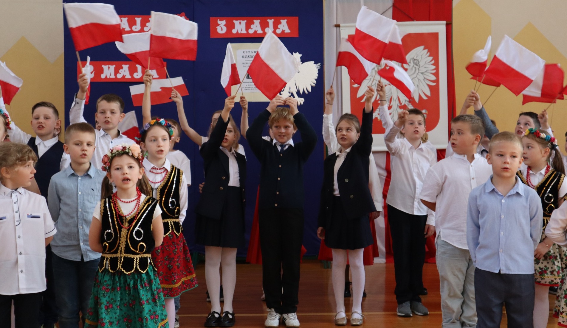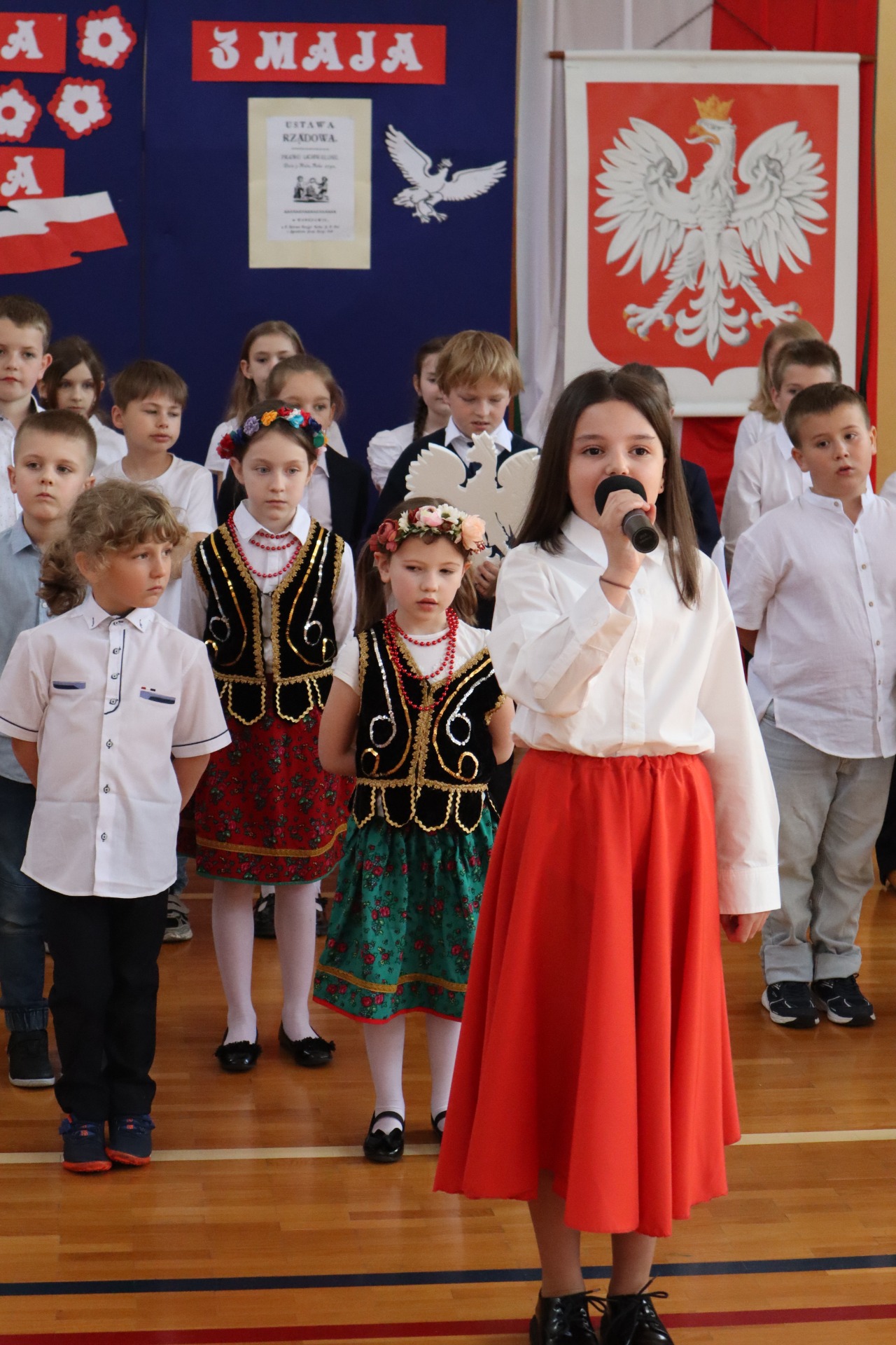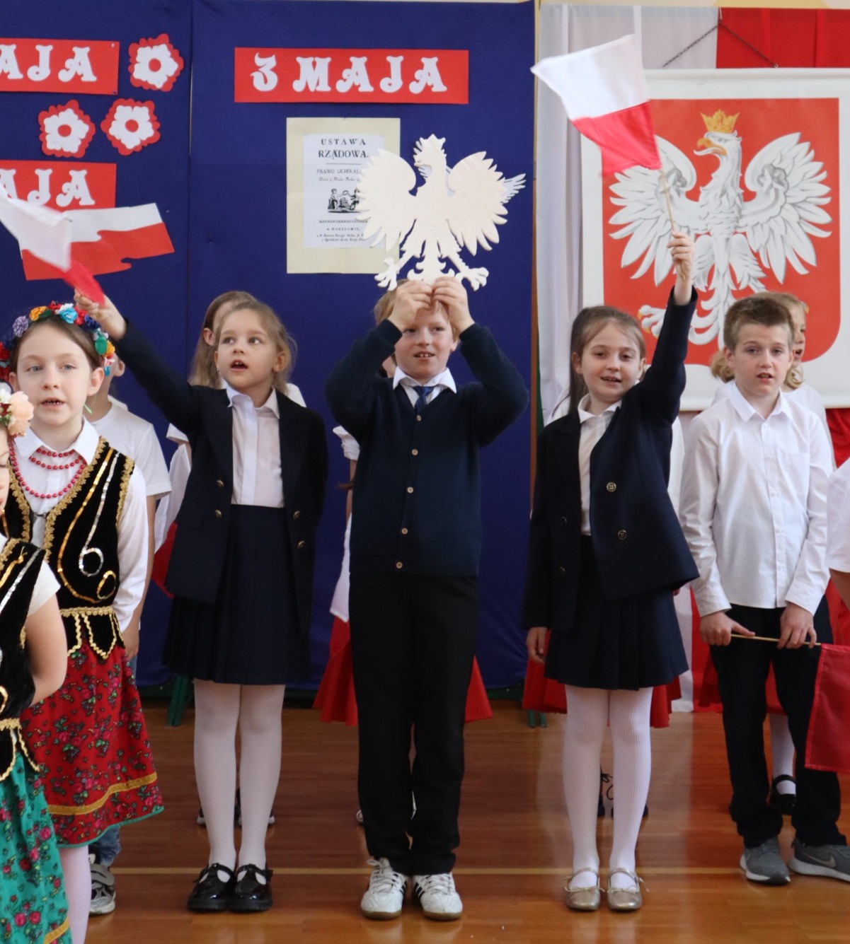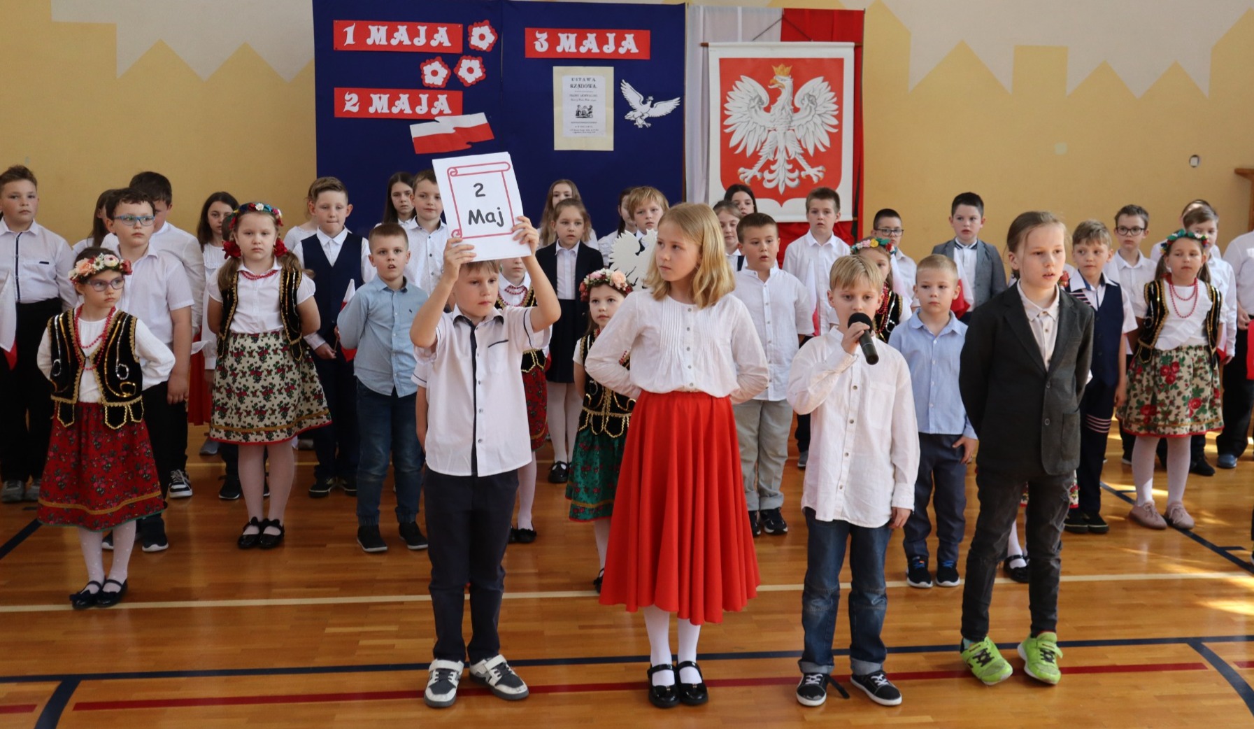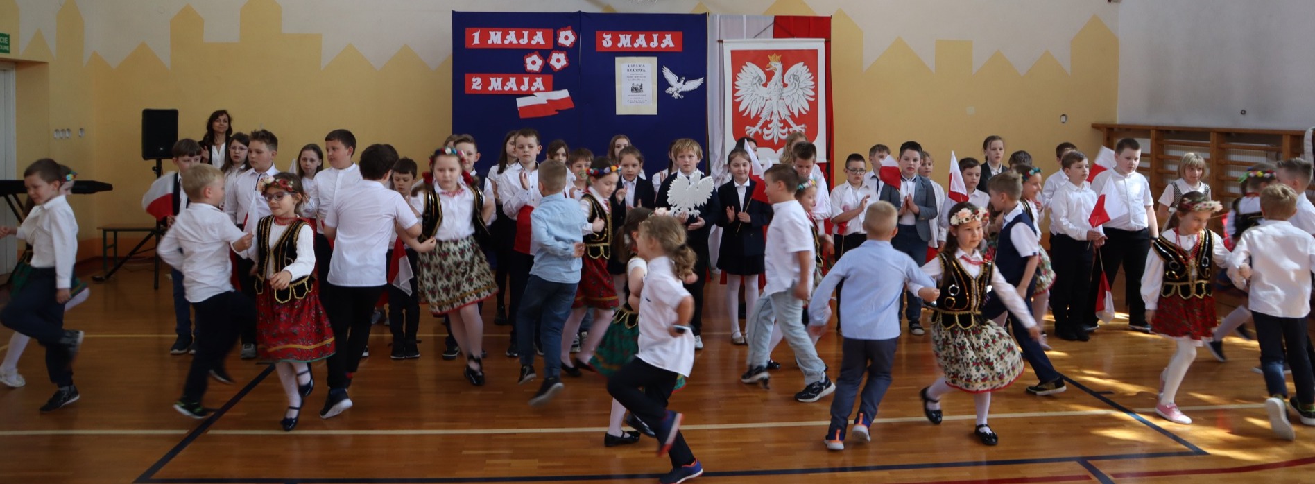 Akademia rozpoczęła się od wprowadzenia sztandaru naszej szkoły i odśpiewania hymnu państwowego. Następnie uczniowie przedstawili informacje na temat w/w świąt, zaprezentowali wiersze i piosenki o tematyce patriotycznej. Zarówno wykonawcy jak i widzowie pięknie prezentowali się w strojach galowych, co nadało akademii uroczysty charakter. Cała uroczystość miała na celu kształtowanie postaw patriotycznych i promowanie polskich symboli narodowych.