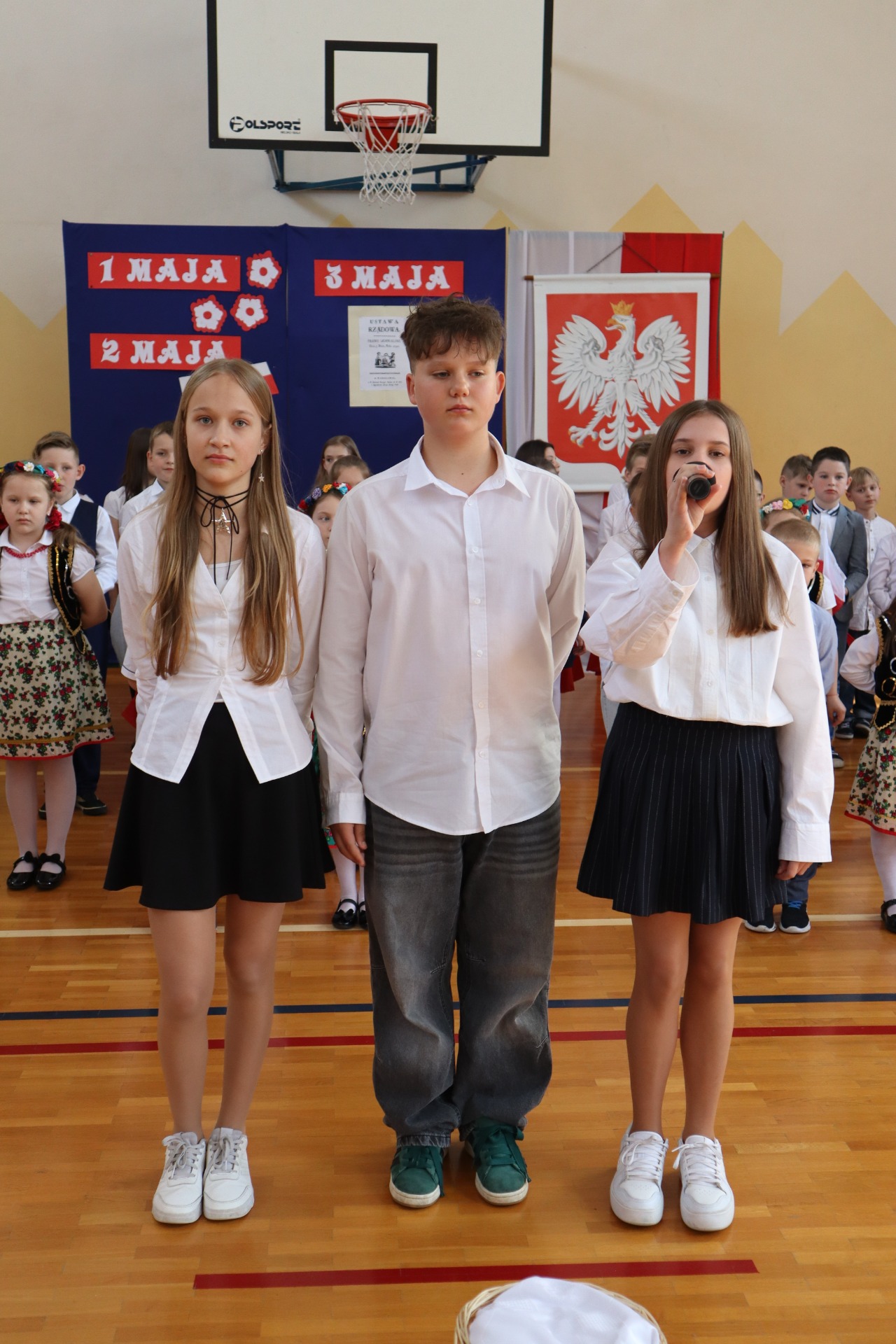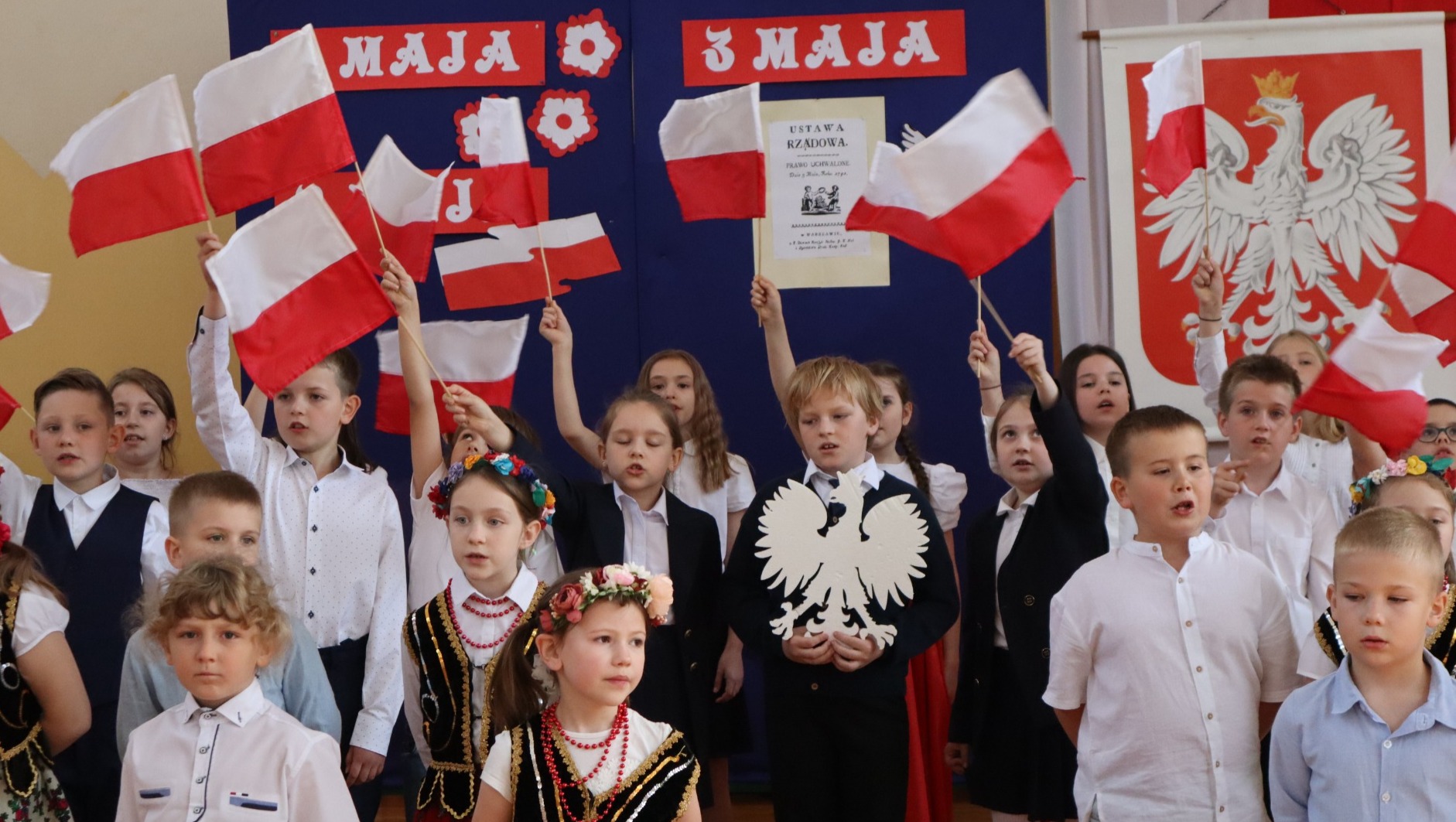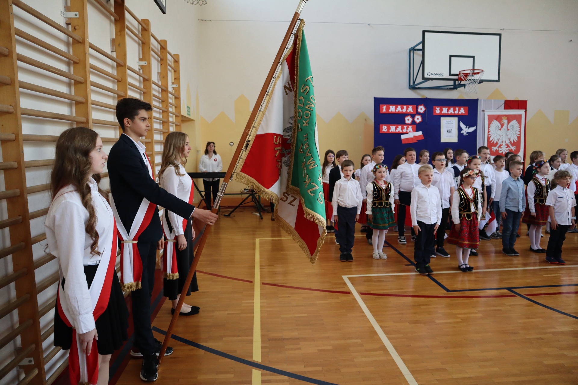 Przed nami kilka świątecznych dni: 1 Maja- Święto Pracy, 2 Maja – Święto Flagi Rzeczpospolitej Polskiej, 3 Maja – Uchwalenie Konstytucji. W naszej szkole te święta zawsze są obchodzone uroczyście i tak też było w tym roku.