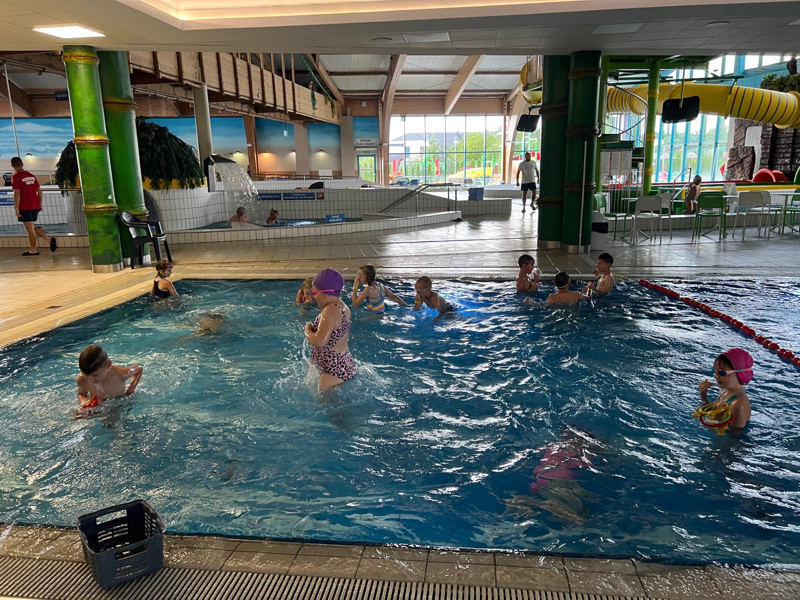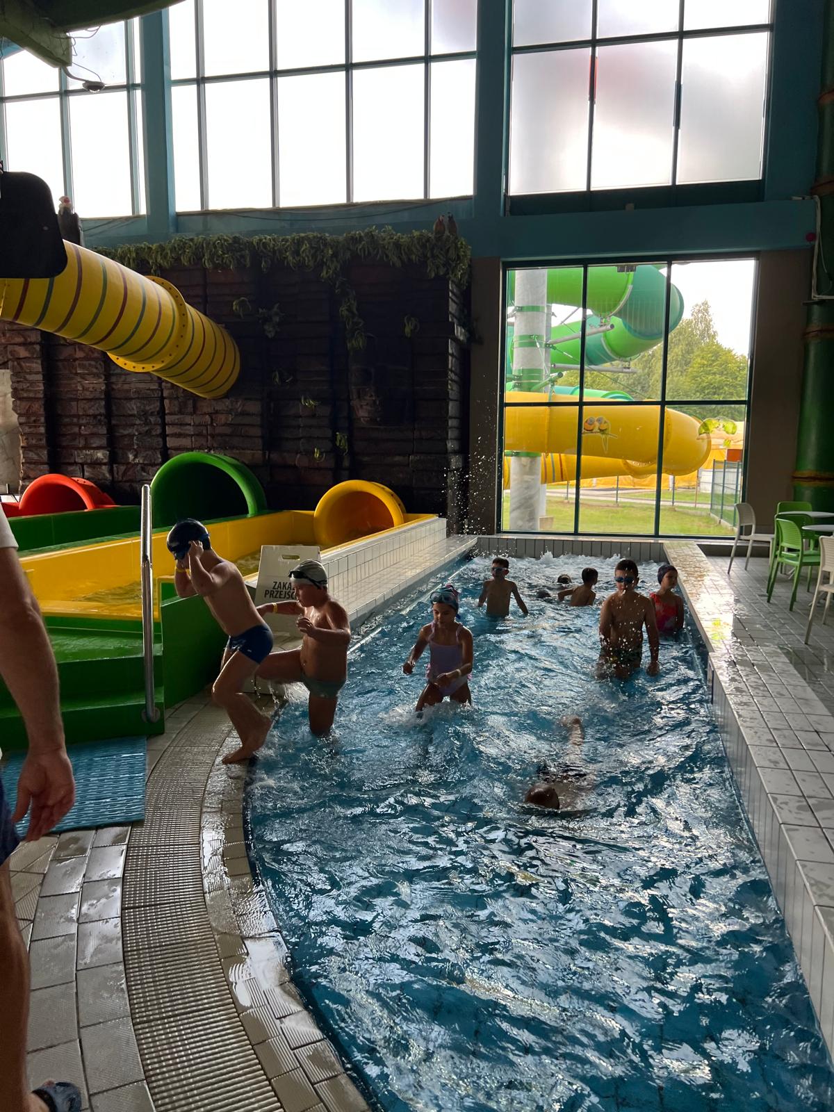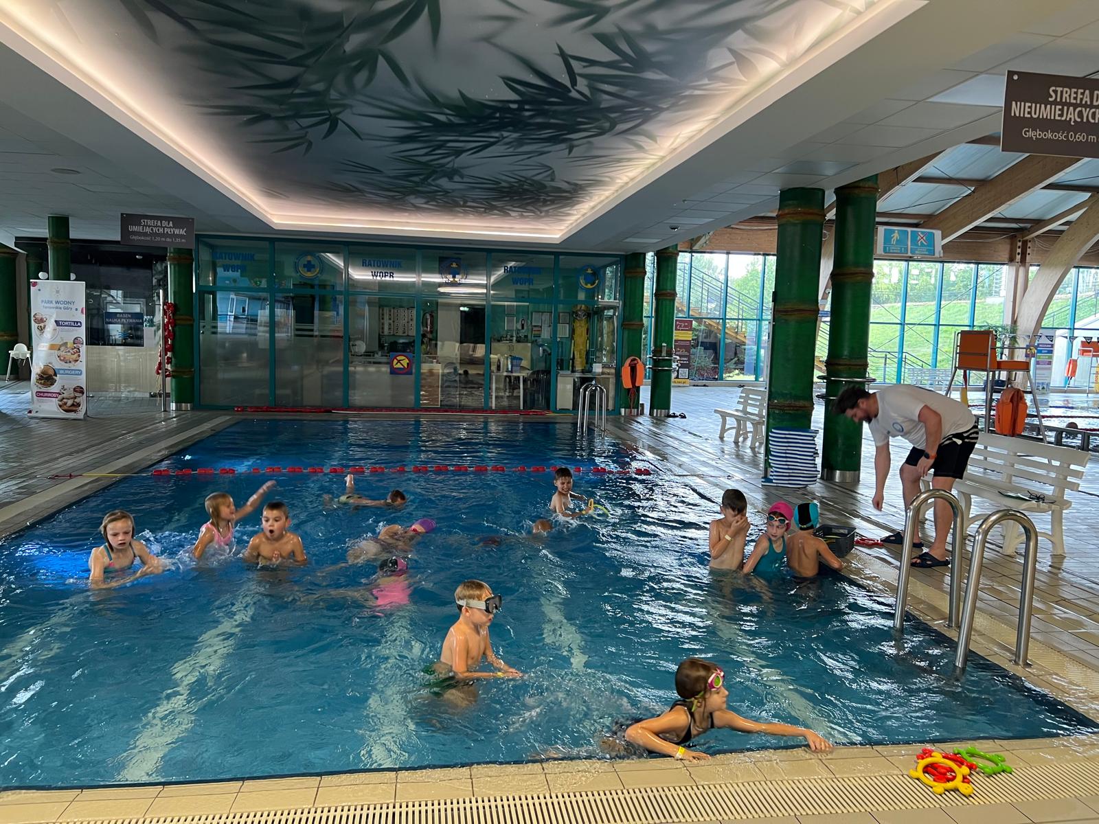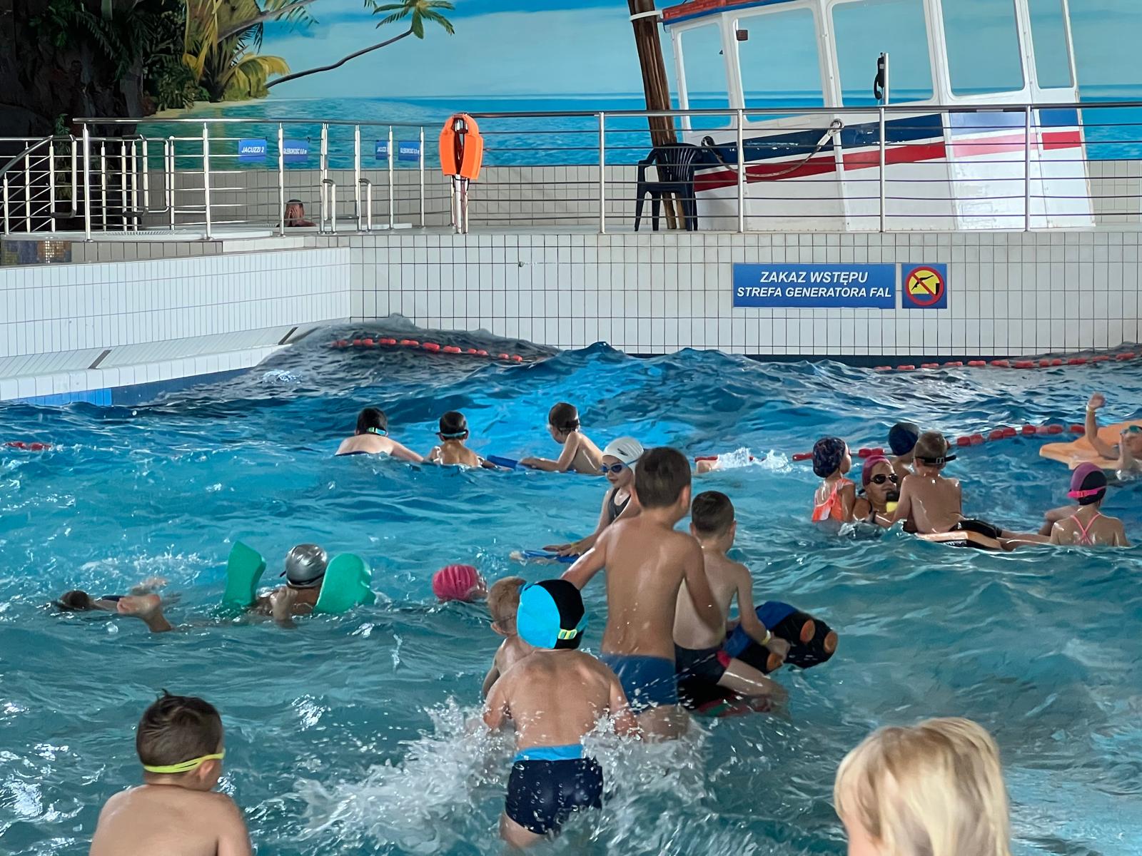 Dzieci z ZSP w Sączowie uczestniczą w zajęciach z zakresu nauki pływania prowadzonych przez wykwalifikowanych instruktorów pływania w Parku wodnym w Tarnowskich Górach. Uczniowie zrealizują 10 zajęć, podczas których nabędą podstawowe umiejętności pływania. Uczestnicy zajęć mają już za sobą połowę zajęć na basenie.