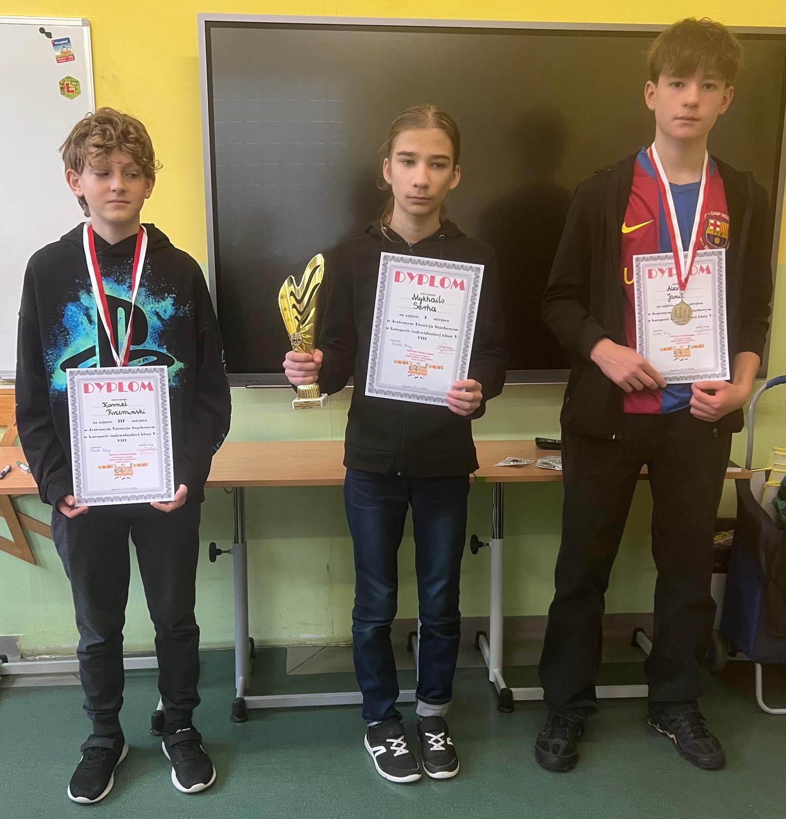 Serdecznie gratulujemy zwycięzcom, którzy grając na co dzień w szachy dla zabawy, rozwijają logiczne, strategiczne myślenie oraz doskonalą taktykę i poprawiają swoje wyniki w kolejnych turniejach. Pierwsze miejsca w kwalifikacji indywidualnej zostały nagrodzone pucharami, a kolejne miejsca medalami. Dzieci otrzymały dyplomy oraz nagrody rzeczowe, które ufundowała Rada Rodziców oraz firma Peri.