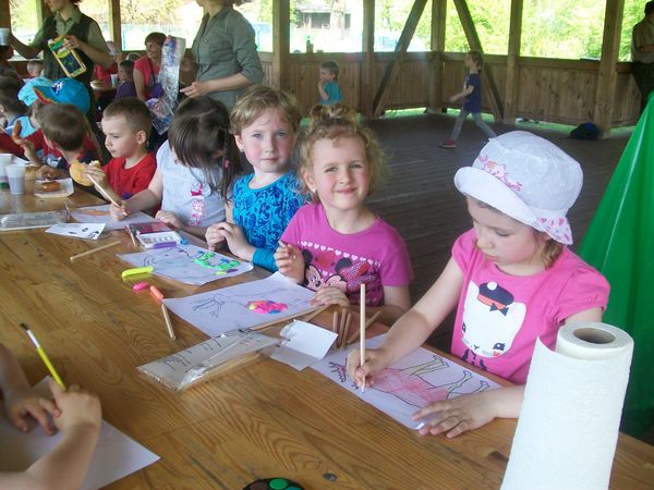 Obchodząc święto lasu przedszkolaki skorzystały z zaproszenia leśników z Nadleśnictwa Świerklaniec i wybrały się 8 maja 2013 r. na leśne warsztaty do Kalet. Las przywitał dzieci piękną pagodą. W ramach warsztatu odbyła się wędrówka ścieżką edukacyjną z leśnikami i wizyta w leśnej szkółce. Dzieci poznawały zwierzęta i rośliny leśne. Obserwowały leśną przyrodę w bezpośrednim kontakcie. W ramach warsztatów była również część rekreacyjna. Dzieci skorzystały z posiłku z grilla. Była okazja do wspólnych zabaw na leśnej polanie. Można było pograć w piłkę, w badmintona, poskakać na skakance, urządzić tor przeszkód. Dla dzieci, które wolały spędzić czas mniej intensywnie przygotowano warsztaty plastyczne. Dzieci mogły rysować i malować.