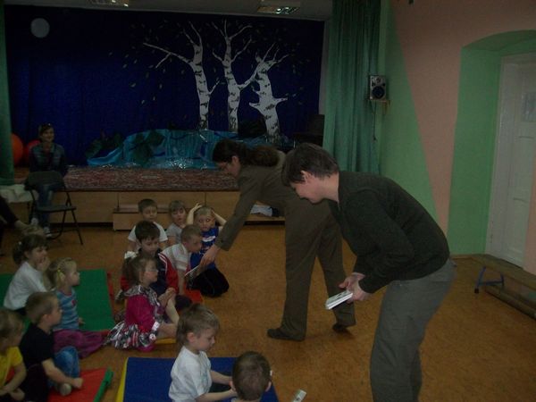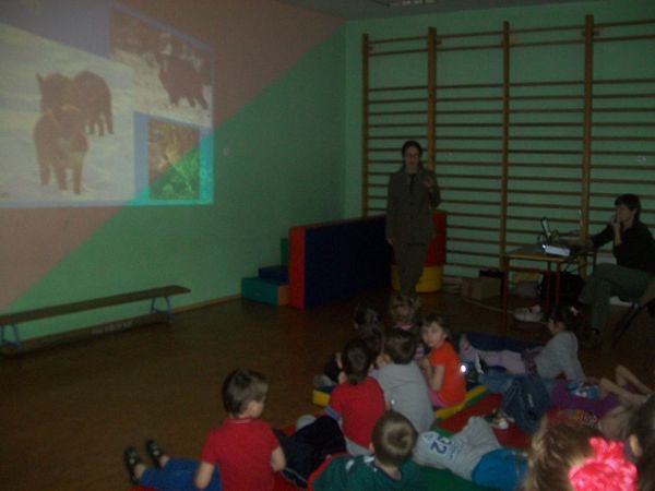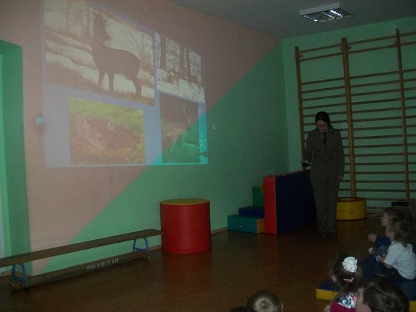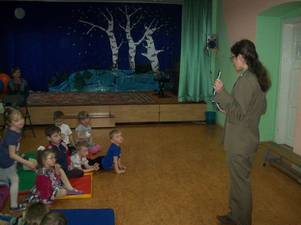 18 kwietnia 2013 r. przedszkolaki spotkały się z leśnikami z Nadleśnictwa Świerklaniec. Leśnicy przygotowali dla dzieci prezentację multimedialną pt.: „Zwierzęta naszych lasów”. Przekazując wiedzę o środowisku leśnym leśnicy przygotowali dla przedszkolaków wiele niespodzianek: poroża leśnych zwierząt, gry i zabawy oraz plansze edukacyjne. Wszystkie dzieci otrzymały od gości upominki w postaci mapy Nadleśnictwa Świerklaniec i zakładki do książki.