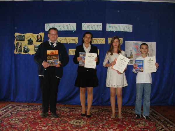 15 maja 2013 r. w naszej szkole odbył się Międzyszkolny Konkurs Recytatorski pod hasłem: "Prezentujemy twórczość pisarzy anglojęzycznych".
