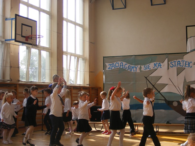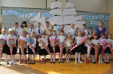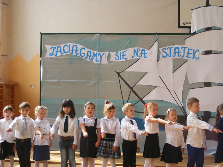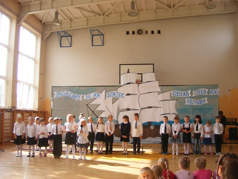 Drugiego września załoga klasy I weszła na pokład statku, aby odbyć pierwszą podróż w świat wiedzy. Było to niezwykłe przeżycie dla 22 pierwszaków. Wierszem, piosenką i tańcem zaliczyli swój pierwszy egzamin, po czym złożyli uroczyste ślubowanie. Następnie pani dyrektor szkoły Małgorzata Fijołek dokonała aktu pasowania na ucznia. Uwieńczeniem tego dnia był słodki upominek przygotowany przez rodziców.