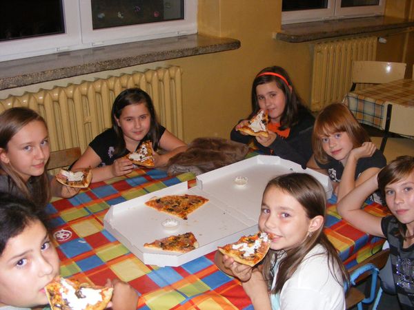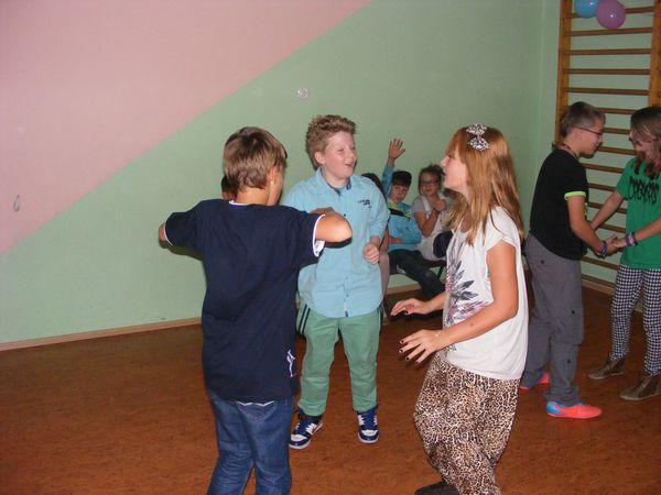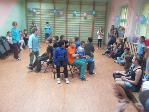 1 października odbyła się nasza pierwsza dyskoteka w tym roku szkolnym. Tym razem poświęcona była chłopcom. Organizatorzy dyskoteki (samorząd) mieli wątpliwości co do obecności dzieci. Ku naszemu zdziwieniu sala teatralna była pełna uczniów klas IV-VI. Opiekę nad nami sprawowała Pani Bogusia Duś, a także Pani Iza Gielnik. Nasze tradycyjne zamawianie pizzy odbyło się na początku. O godz. 17.00 wszyscy ruszyli na parkiet. Z samego początku młodsi uczniowie nie chcieli tańczyć, ale na szczęście rozkręcili się i wszyscy bawiliśmy się wspaniale w pięknie udekorowanej przez samorząd sali. Nie obyło się bez konkursów, jednym z nich były ,,krzesełka’’. Wygranym okazał się Daniel Małota - uczeń klasy VI. Następny konkurs wygrał Tomasz Karch, także uczeń klasy VI. Konkurs polegał na namalowaniu partnerki trzymając pisaka w buzi. Na Mistera dyskoteki wybraliśmy najlepszego tancerza - Karola Mitasa, ucznia klasy IV. Zwycięzcy osłodzili sobie życie lizakami. Zmęczeni tańcami wyczekiwaliśmy na upragnioną pizzę. Następnie posprzątaliśmy salę i wróciliśmy pełni wrażeń do domów.