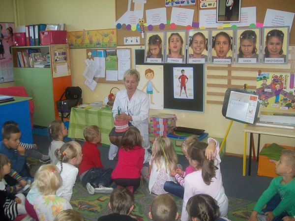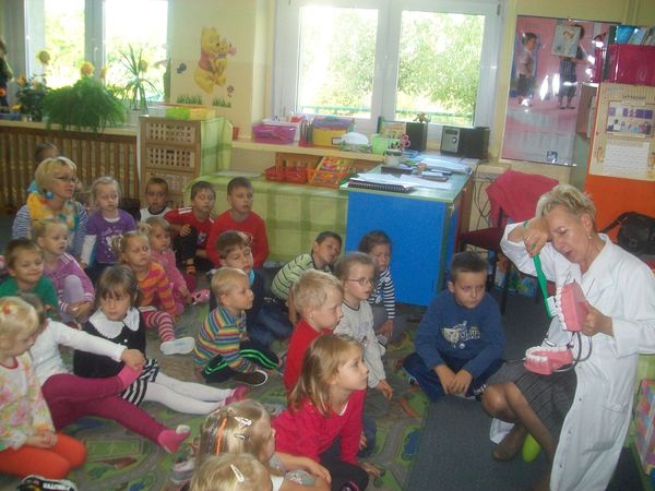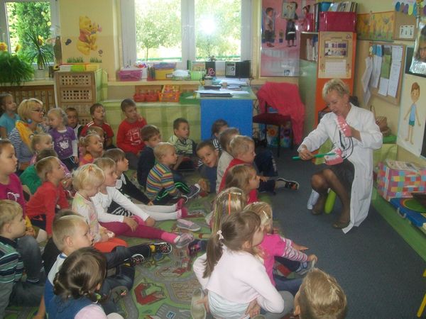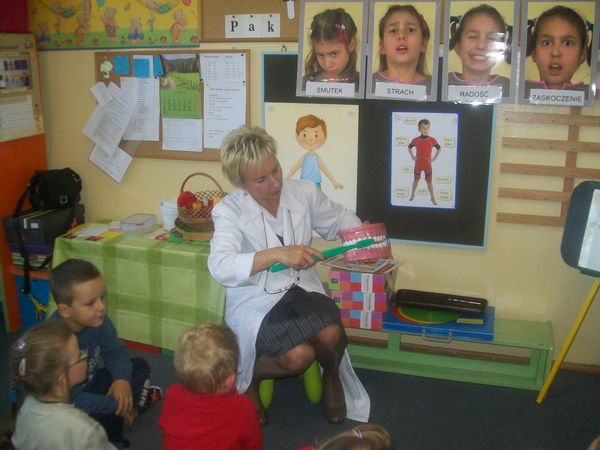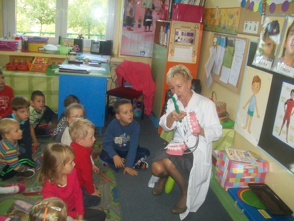 25 września po raz pierwszy w nowym roku szkolnym przedszkolaki spotkały się z higienistka przedszkolną – panią Stanisławą Pawletą. Pani higienistka przypomniała zasady zdrowego stylu życia i nauczyła dzieci jak prawidłowo szczotkować zęby. Od tej pory dzieci przedszkolne codziennie po śniadaniu będą myły w przedszkolu zęby.