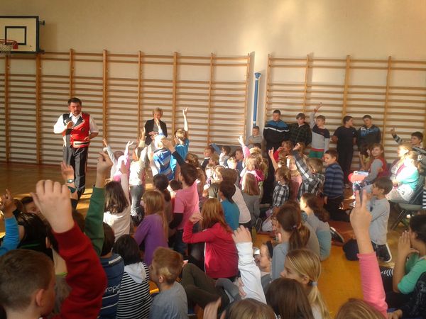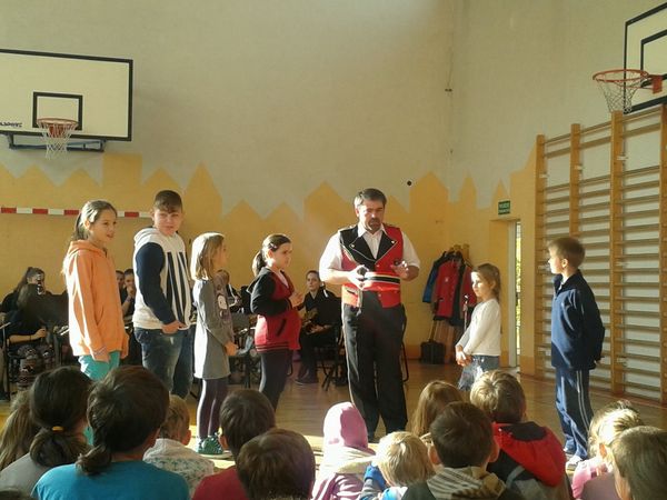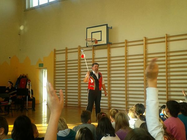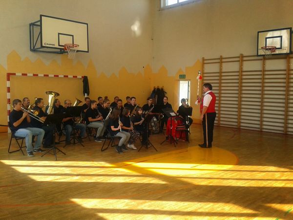 Nasza szkoła zapewnia nam mnóstwo atrakcji! Tym razem postawiono na muzykę. 21 października zawitała u nas Orkiestra Dęta pod kierownictwem pana Grzegorza Zawodniaka. W jej skład wchodzą osoby w różnym wieku: starsze od nas, jak również nasi rówieśnicy. Wśród muzyków dostrzegliśmy naszą szkolną koleżankę – Natalkę z III klasy. Orkiestra zagrała dla nas kilka utworów. Pojawiły się wśród nich zarówno piosenki, które dziś określilibyśmy jako klasyczne (Orkiestry dęte), ale także takie, które obecnie królują na szczytach list przebojów (Bałcanica zespołu Piersi czy Ona tańczy dla mnie Weekendu). Największą atrakcją dla nas był konkurs „Jaka to melodia?”. Na środek zaproszono przedstawicieli każdej klasy. Mieli oni wylosować instrument, na którym członkowie orkiestry zagrają pewien utwór. Wszystko poszło sprawnie. Każdy odgadł o jaką piosenkę chodzi i w nagrodę otrzymał długopis z logo orkiestry. Później zespól zagrał dla nas jeszcze kilka utworów oraz zaprosił do współpracy. Być może za jakiś czas zobaczymy i usłyszymy w orkiestrze kogoś z naszych szkolnych szeregów?