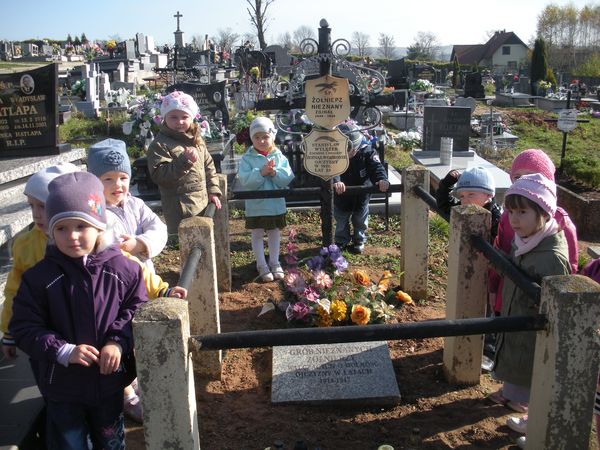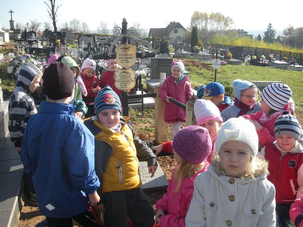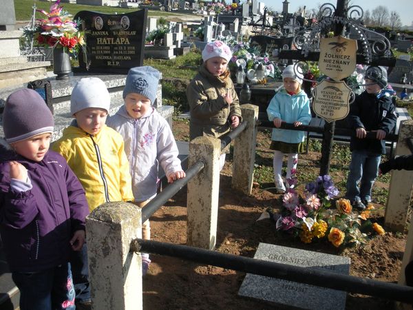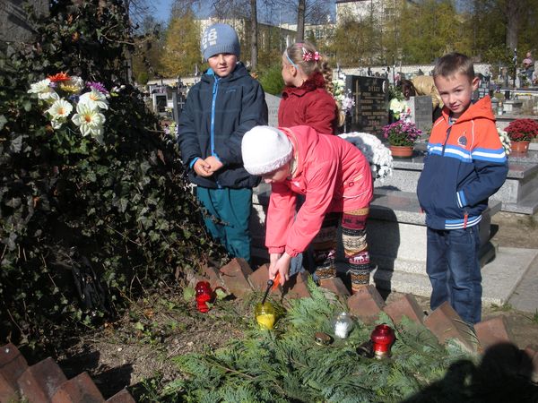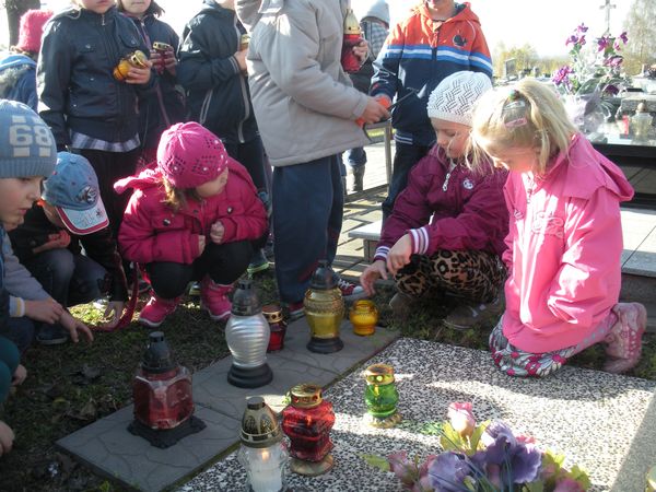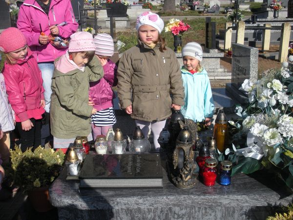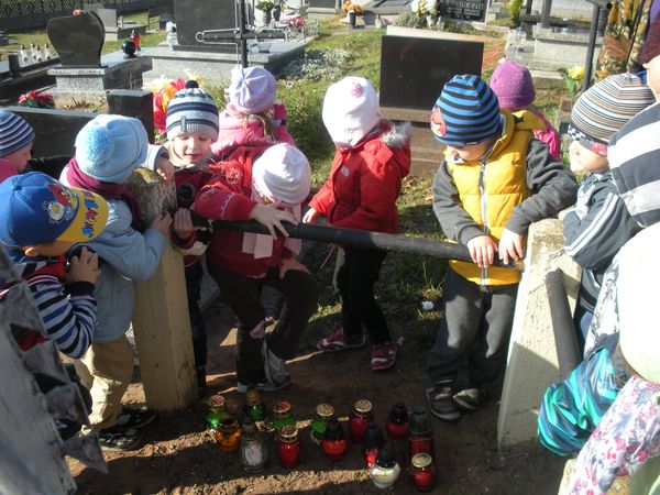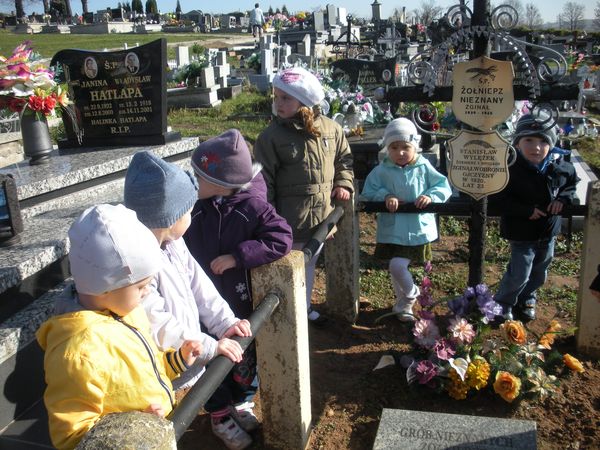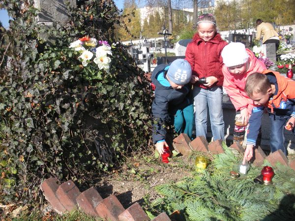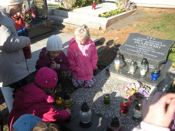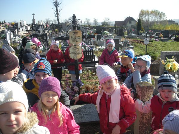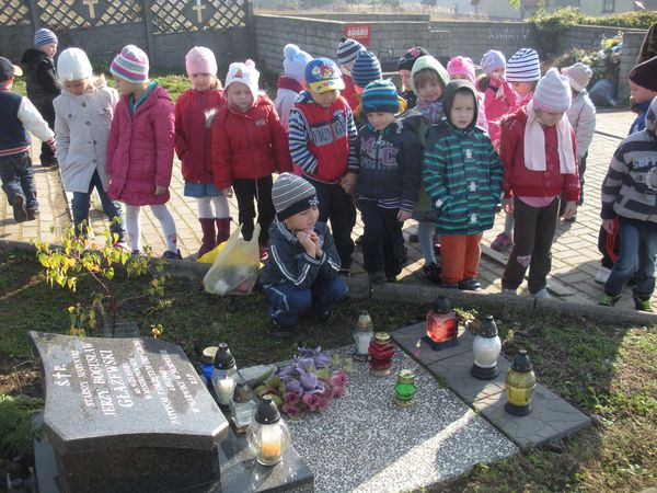 1 listopada, święto Wszystkich Świętych, przedszkolaki uczciły wyjściem 30 października na cmentarz parafialny w Sączowie. Wszystkie grupy odszukały grób nieznanego żołnierza i zapaliły na nim znicze. W ten symboliczny sposób, co roku dzieci czczą pamięć wszystkich poległych za naszą wolność.